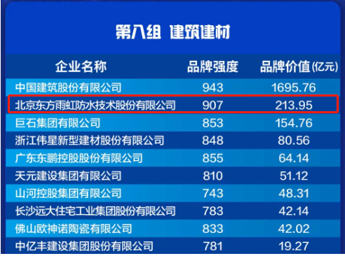 東方雨虹品牌價值213.95億元上榜2021中國品牌價值評價信息榜