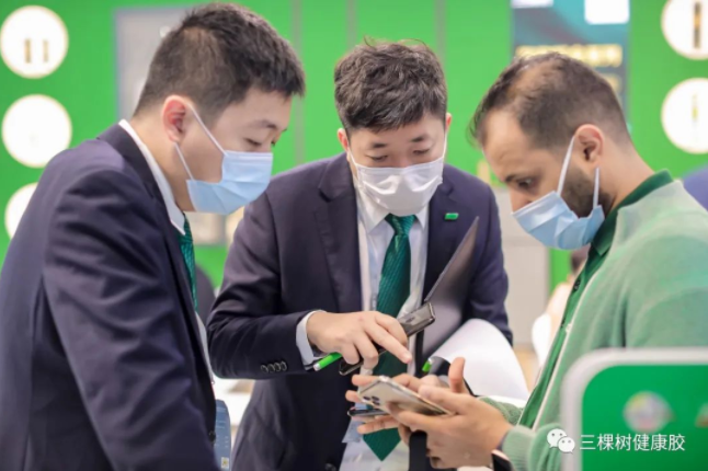 三棵樹健康膠,以其高端的品牌形象與高品質的產品亮相展會,現場進入展館的觀眾絡繹不絕,三棵樹憑借其高標準的接待和服務給來訪觀眾留下了深刻的印象,交流熱情高漲。