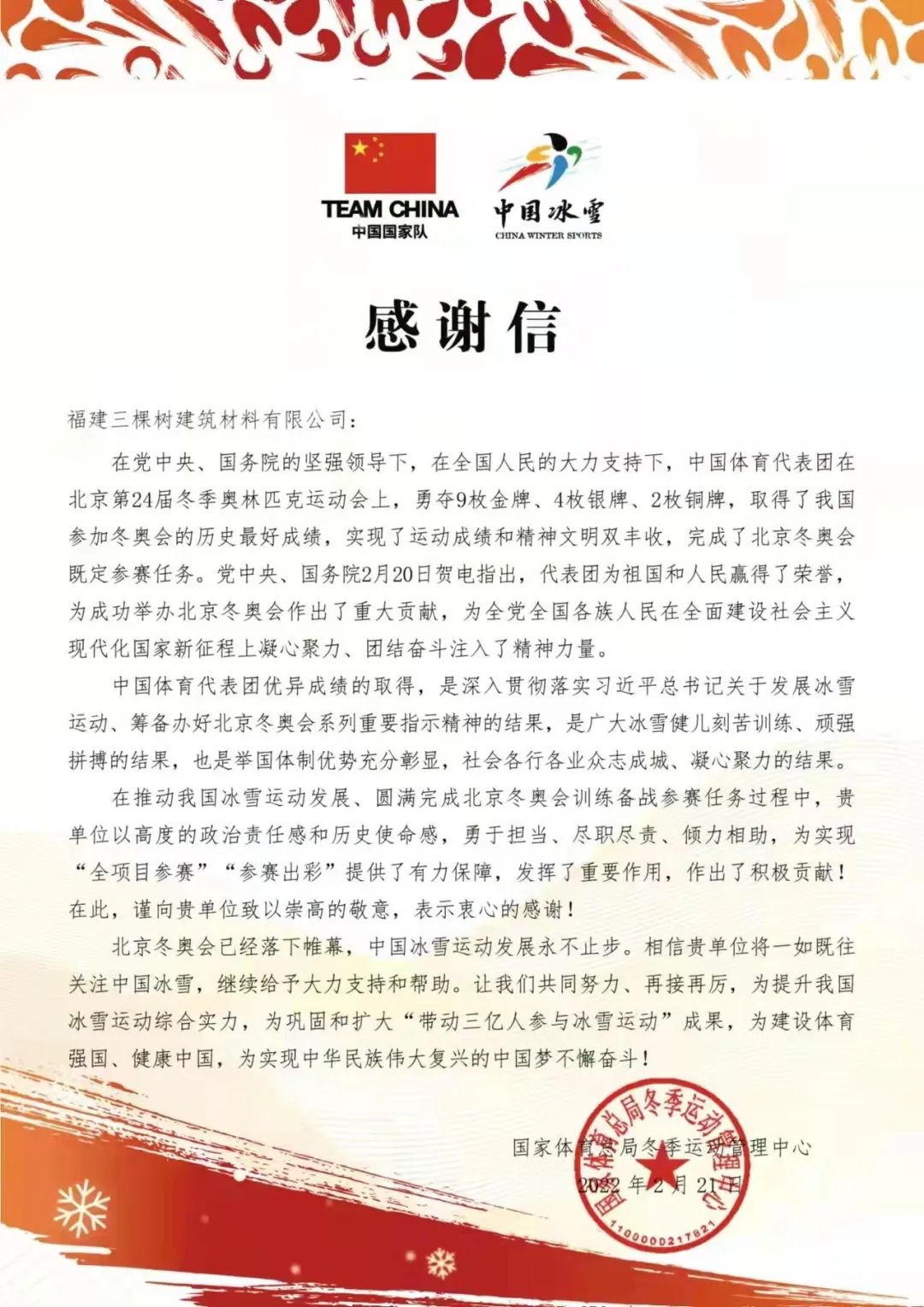 2月20日,北京2022年冬奧會勝利閉幕,中國體育代表團在獲得了9金4銀2銅的優秀成績,三棵樹品牌代言人夢之隊也憑借優異的表現取得了4金2銀1銅的佳績。