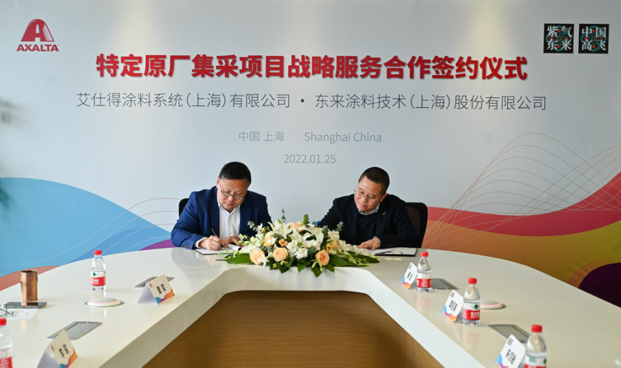 2022年1月25日,全球領先的液體和粉末涂料供應商艾仕得涂料系統(NYSE:AXTA)與東來涂料技術(上海)股份有限公司(“東來技術”)在艾仕得上海總部,舉行“特定原廠集采項目戰略服務合作”簽約儀式。