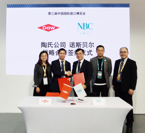 11月6日,陶氏公司在第三屆中國國際進口博覽會(CIIE2020)上與諾斯貝爾化妝品股份有限公司簽署戰略合作協議,合作目標金額為500萬美金。雙方將在個人護理領域結合各自的產品和技術優勢展開合作,開發出符合天然健康及綠色環保理念的應用方案,共同推動中國個人護理行業的可持續發展。