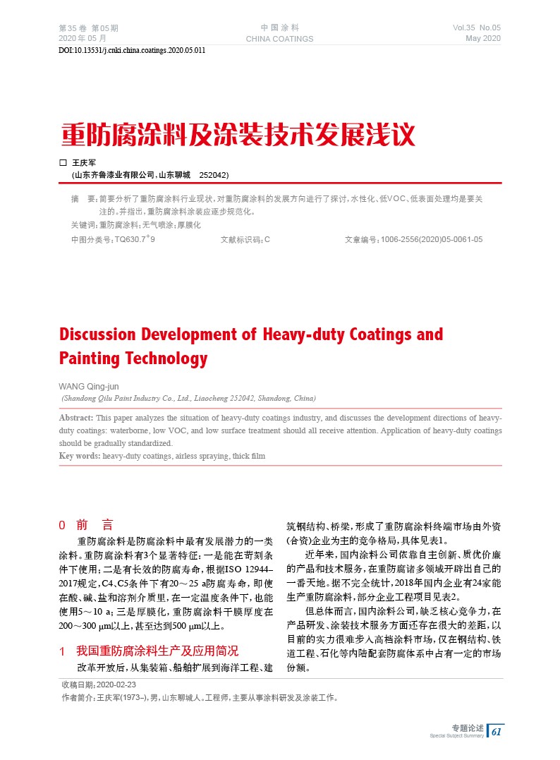發(fā)表于2020-08-07 16:49:08| 次閱讀| 來源中國涂料| 作者王慶軍