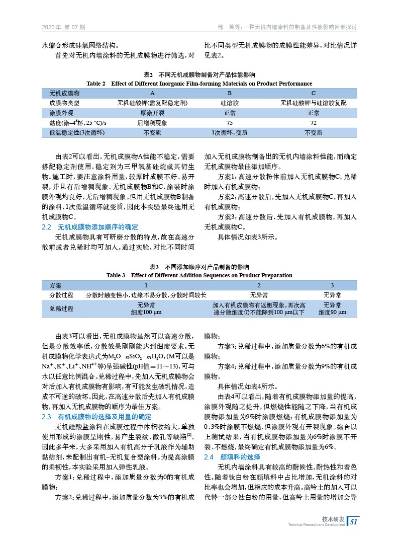 一種無機內墻涂料的制備及性能影響因素探討