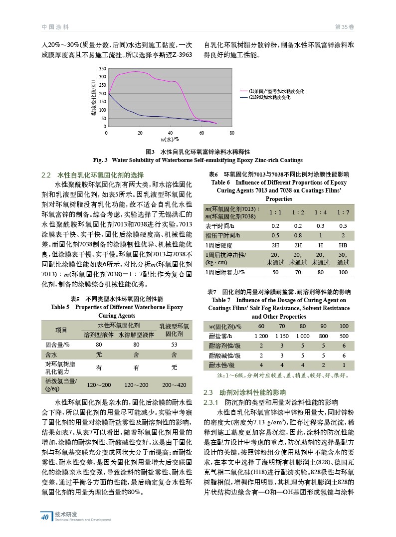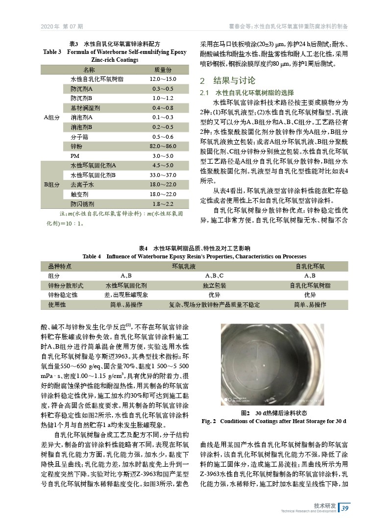 摘要:介紹了以水性自乳化環氧樹脂為基料制備環氧富鋅涂料,分別討論了水性自乳化環氧樹脂對鋅粉穩定性機理及對施工性影響、水性環氧固化劑對自乳化環氧樹脂水稀釋性和涂膜耐水、耐鹽霧的影響,以及不同助劑對涂料施工及涂膜性能的影響,推薦了適合的涂層配套方案。制備的水性自乳化環氧富鋅涂料具有優異的貯存穩定性和良好的施工性,涂膜具有優異的電化學防腐,可用于化工大氣和海洋環境的重防腐蝕。