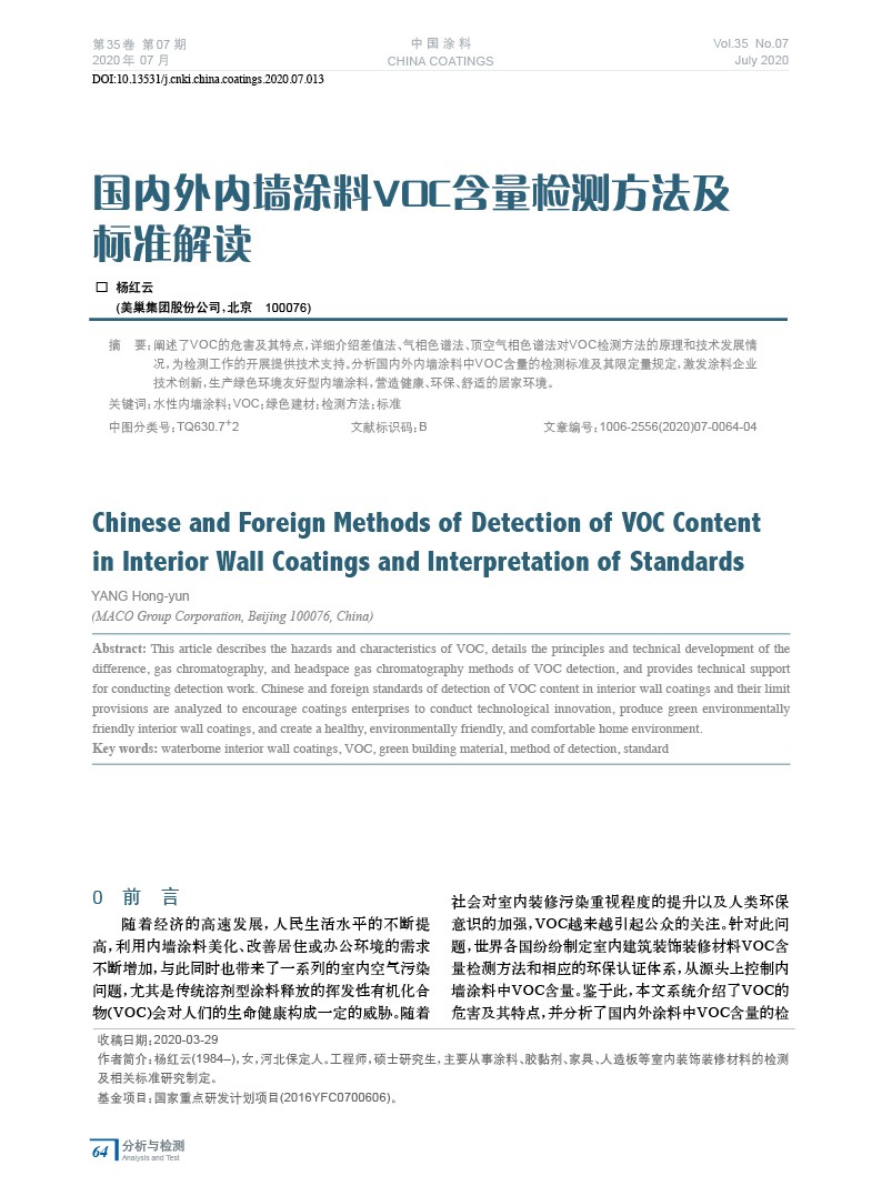國內外內墻涂料VOC含量檢測方法及標準解讀