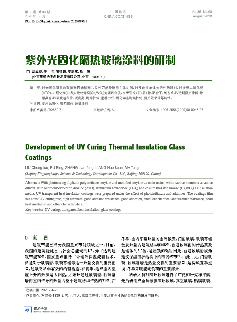 發表于2020-11-10 16:12:47| 次閱讀| 來源中國涂料| 作者劉成樓,步 兵,張建鋒,梁浩寬,馬 騰