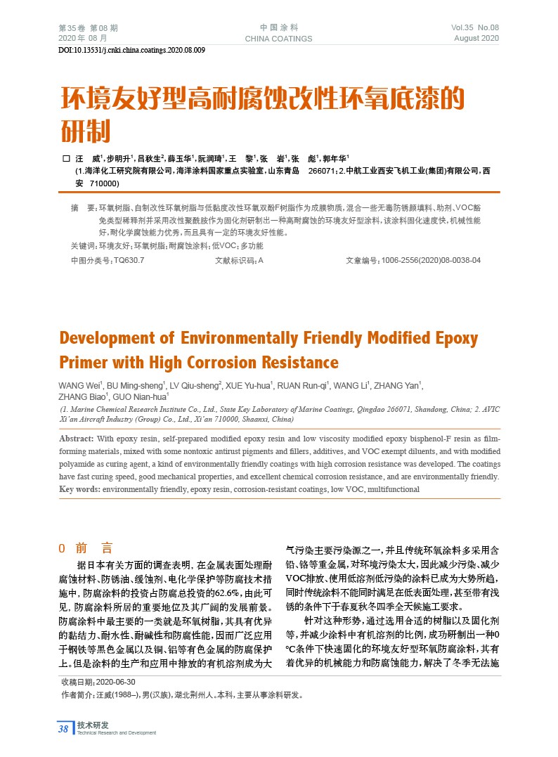 發(fā)表于2020-11-10 16:15:10| 次閱讀| 來(lái)源中國(guó)涂料| 作者汪 威,步明升,呂秋生,薛玉華,阮潤(rùn)琦,王 黎,張 巖,張 彪,郭年華