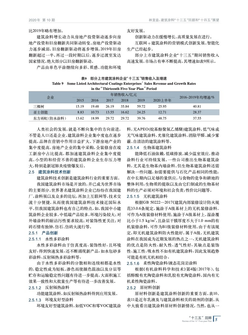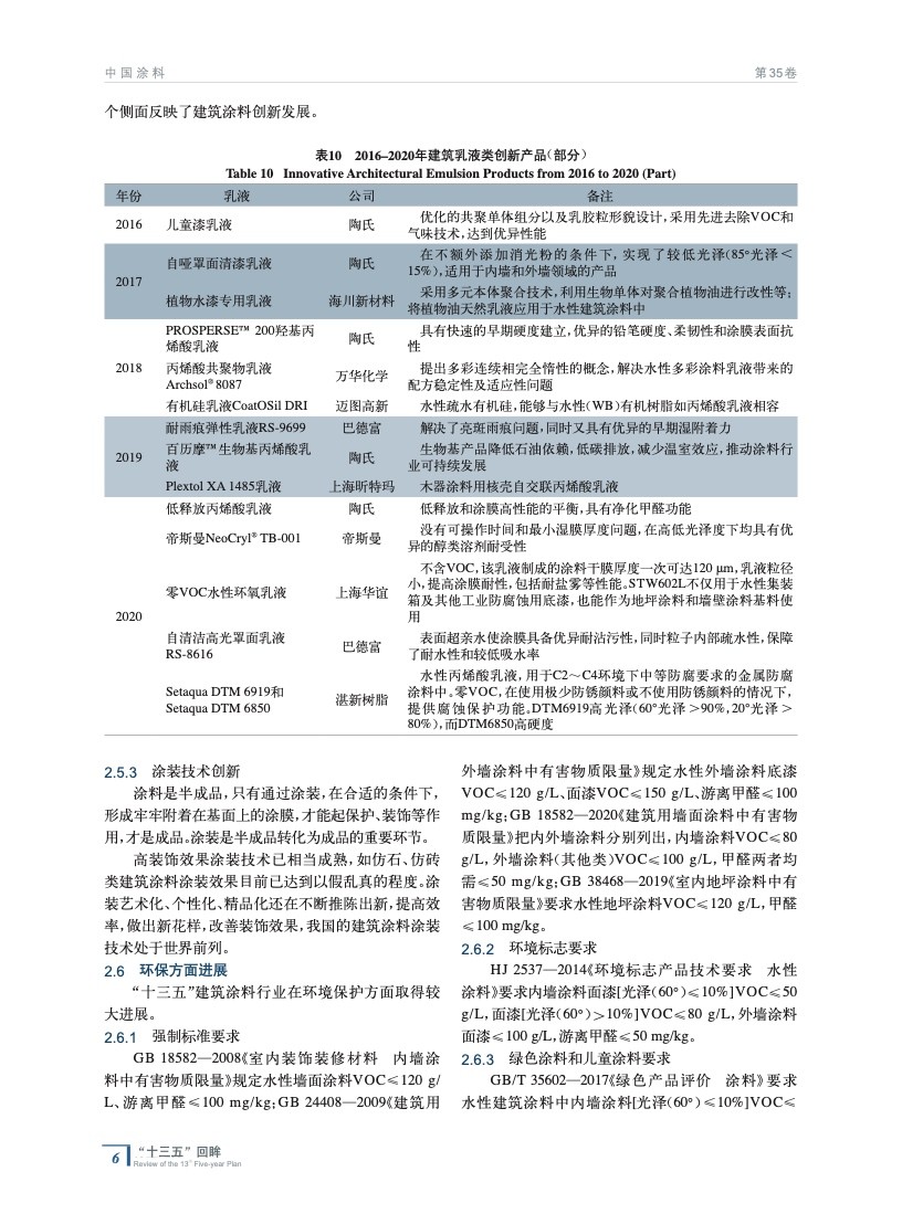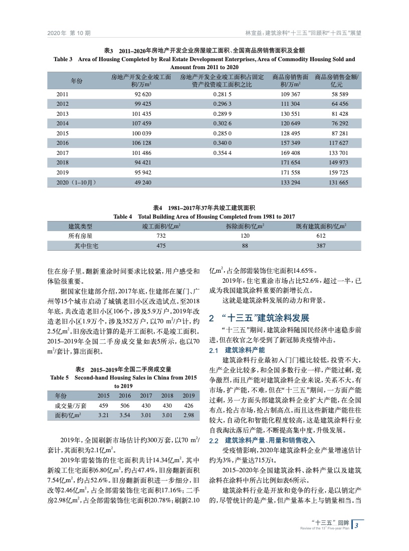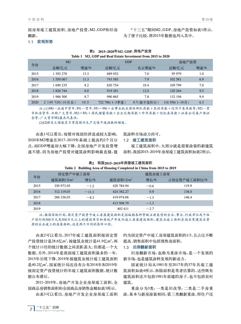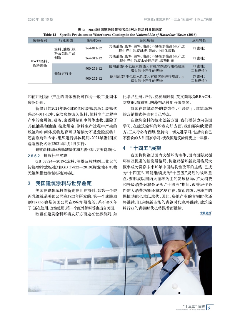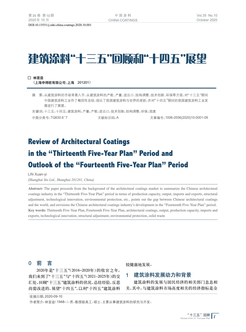 從建筑涂料的市場背景入手,從建筑涂料的產能、產量、進出口、結構調整、技術創新、環保等方面,對“十三五”期間中國建筑涂料工業作了概括性總結,指出了我國建筑涂料與世界的差距,并對“十四五”期間的我國建筑涂料工業發展進行了展望。