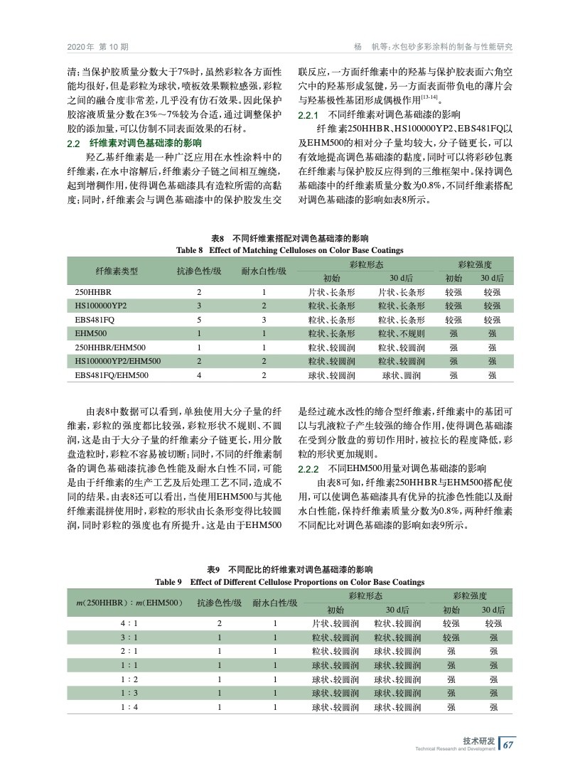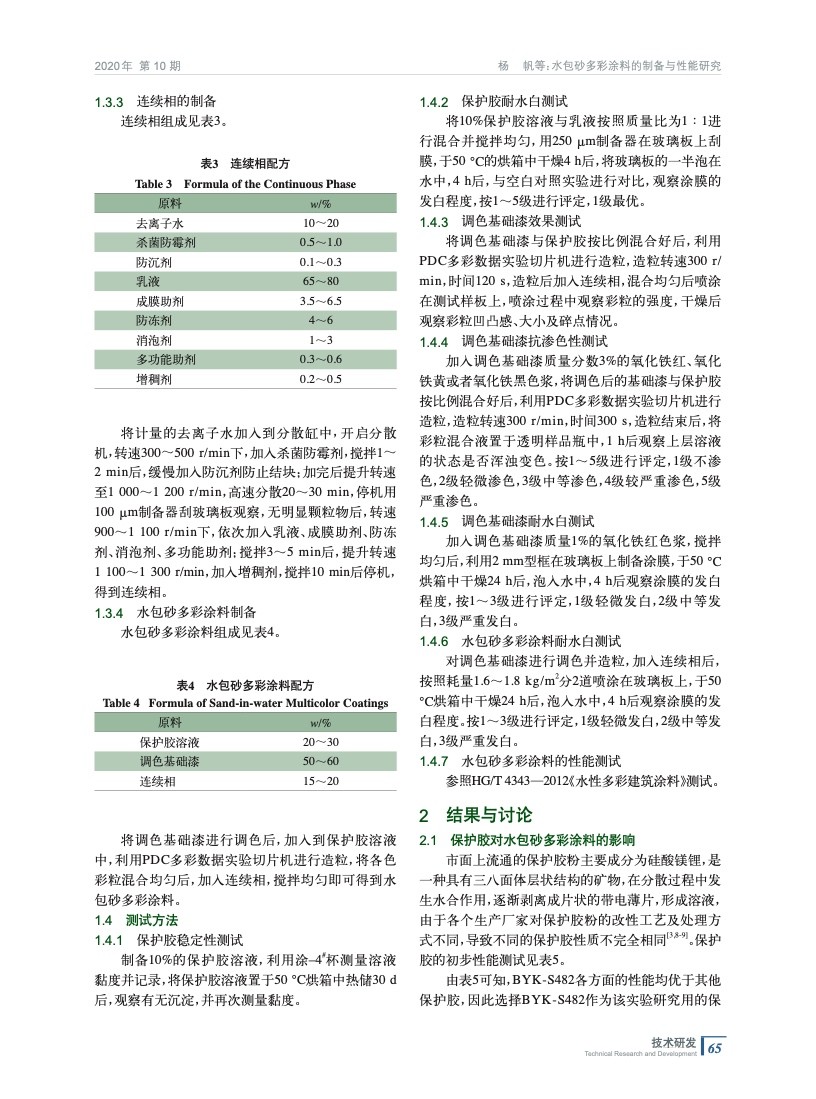 水包砂多彩涂料的制備與性能研究