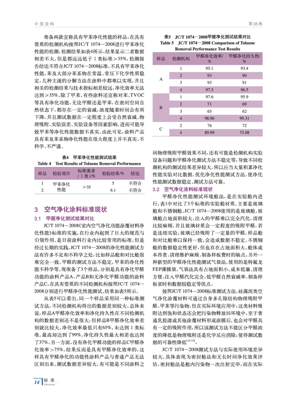 摘要:從實(shí)驗(yàn)設(shè)備、實(shí)驗(yàn)方法和測(cè)試項(xiàng)目上對(duì)比了室內(nèi)空氣凈化涂料的不同空氣凈化性能標(biāo)準(zhǔn),結(jié)果表明,是不同空氣凈化性能標(biāo)準(zhǔn)之間有較大差異,測(cè)試數(shù)據(jù)對(duì)比無(wú)法對(duì)產(chǎn)品設(shè)計(jì)提供有效依據(jù)。根據(jù)涂料空氣凈化性能標(biāo)準(zhǔn)測(cè)試方法現(xiàn)狀,探討了苯及苯系物凈化性能的問(wèn)題,并對(duì)現(xiàn)行標(biāo)準(zhǔn)測(cè)試方法的優(yōu)缺點(diǎn)進(jìn)行比較,提出標(biāo)準(zhǔn)測(cè)試方法的不足,為建立更可靠的空氣凈化涂料標(biāo)準(zhǔn)提供支撐。