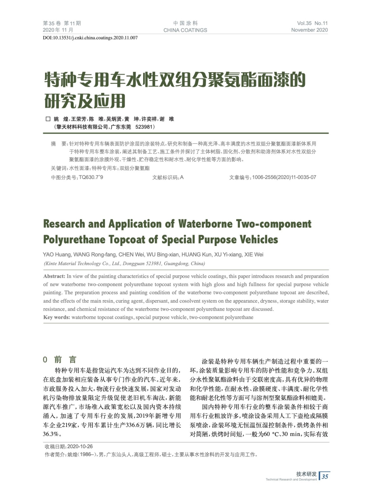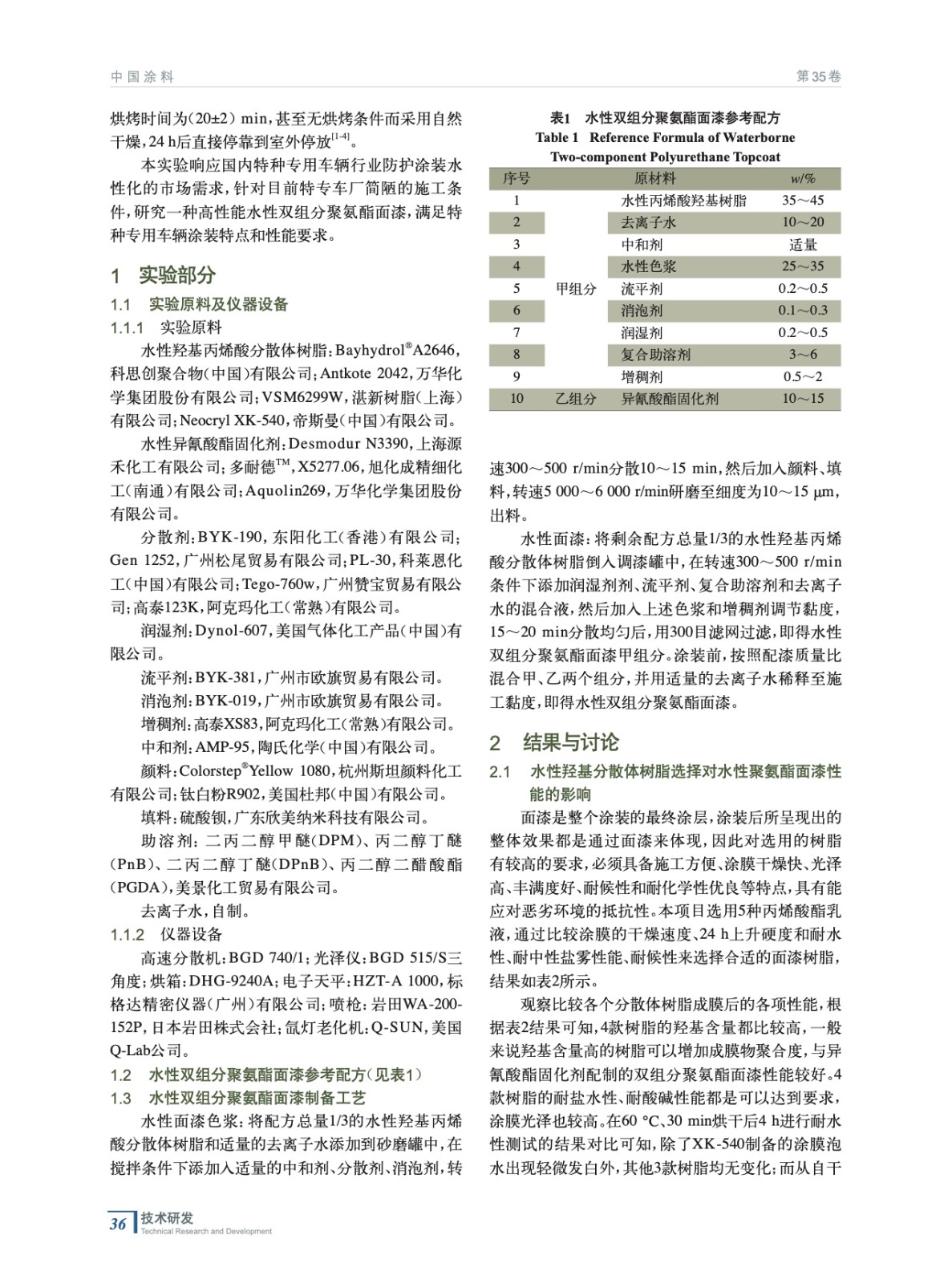 特種專用車水性雙組分聚氨酯面漆的研究及應(yīng)用
