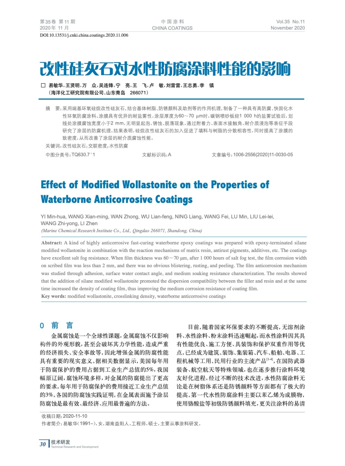 發表于2021-01-22 16:10:01| 次閱讀| 來源中國涂料| 作者易敏華,王賢明,萬 眾,吳連鋒,寧 亮,王 飛,盧 敏,劉雷雷,王志勇,李 鎮