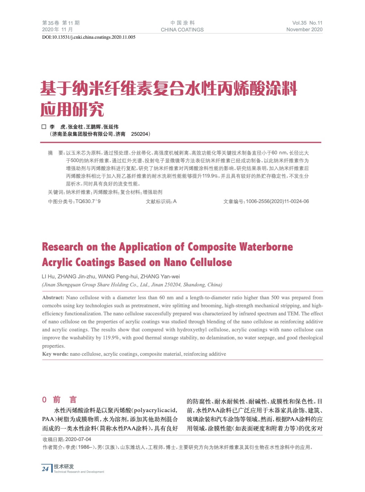 基于納米纖維素復合水性丙烯酸涂料應用研究