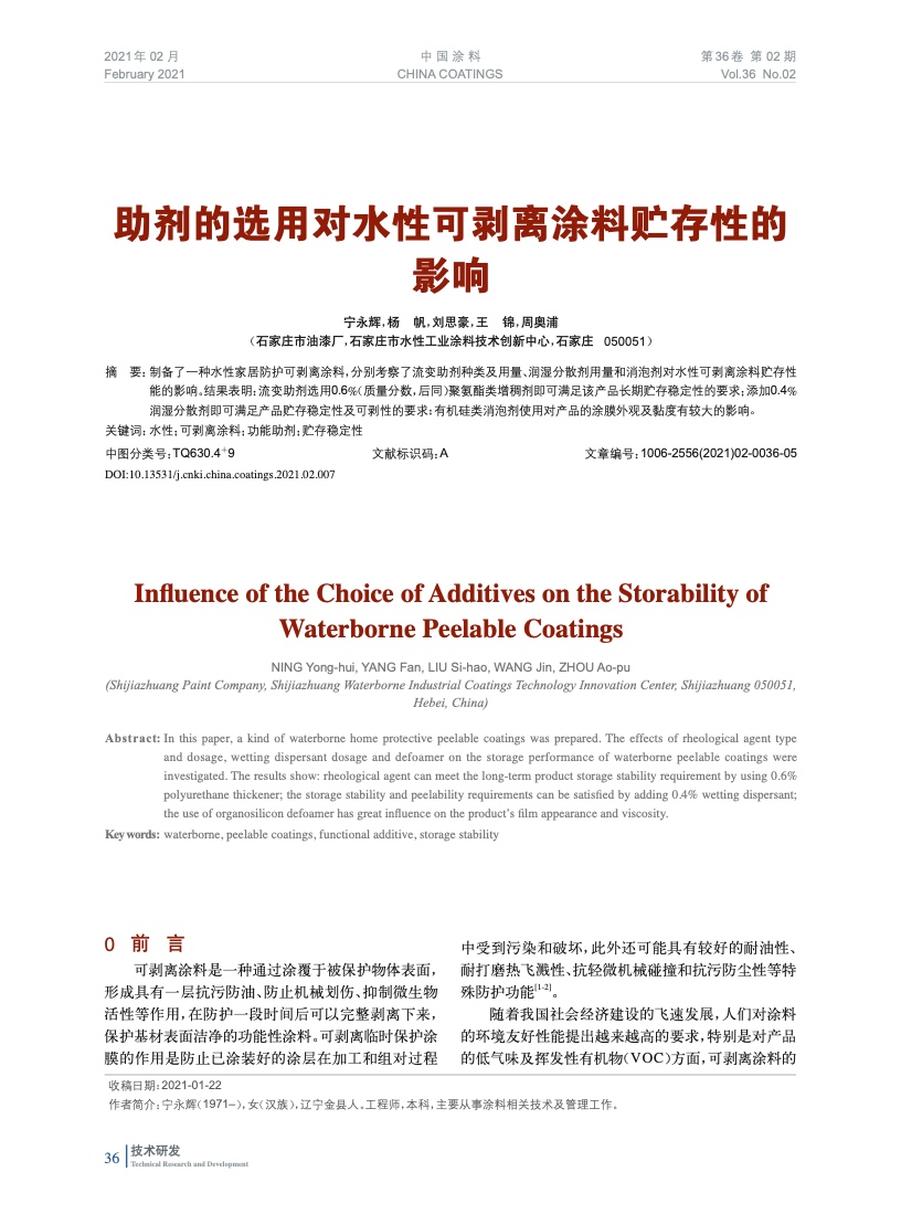 首頁 > 《中國涂料》雜志 > 刊載文章