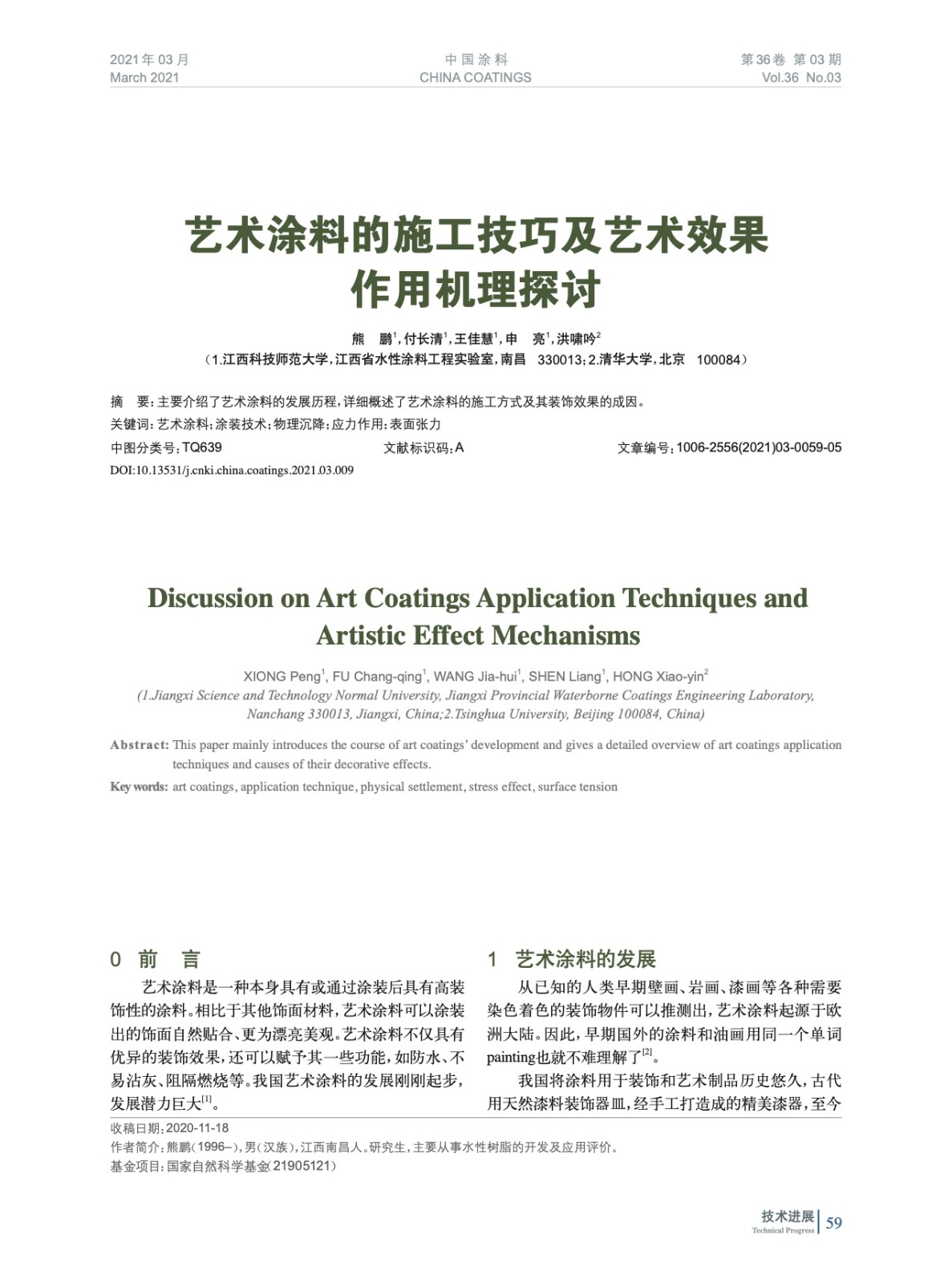 本文系作者@熊 鵬,付長清,王佳慧,申 亮,洪嘯吟 授權中國涂料網發表,并經中國涂料網編輯,未經允許不得轉載,如需轉載請聯系chinacoatingnet@vip.163.com