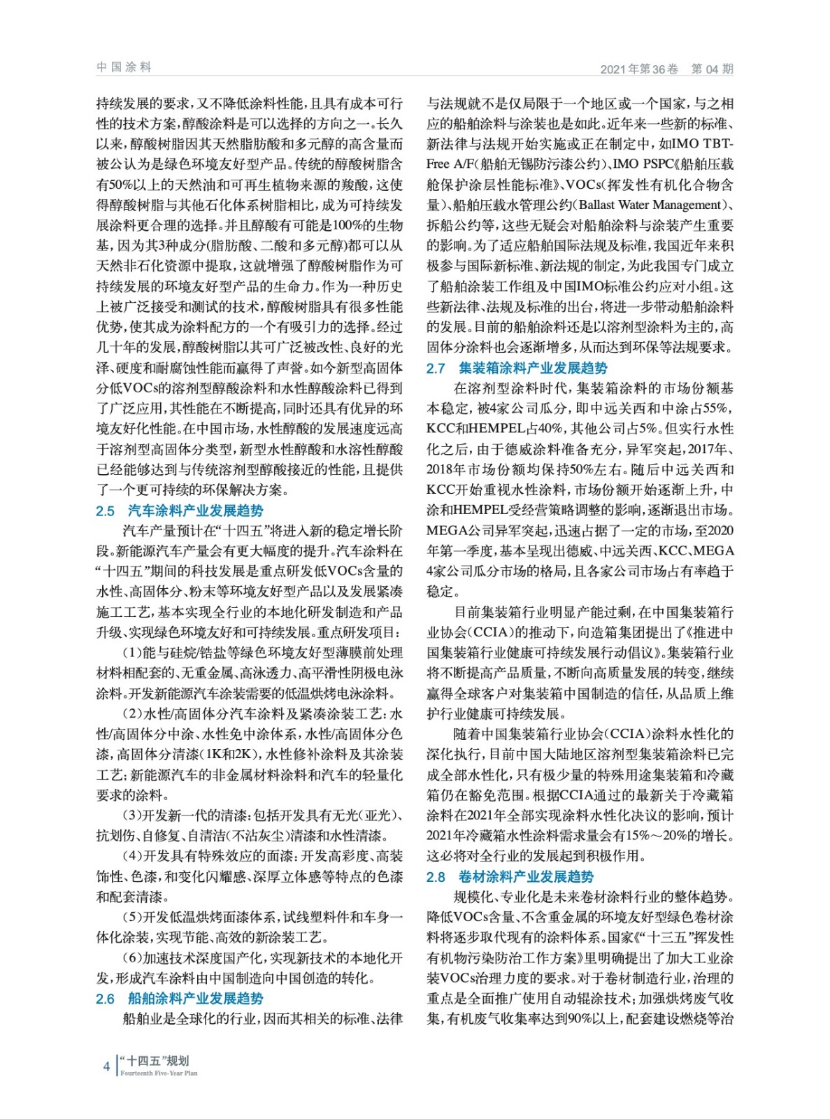 中國涂料行業“十四五”規劃(二)
