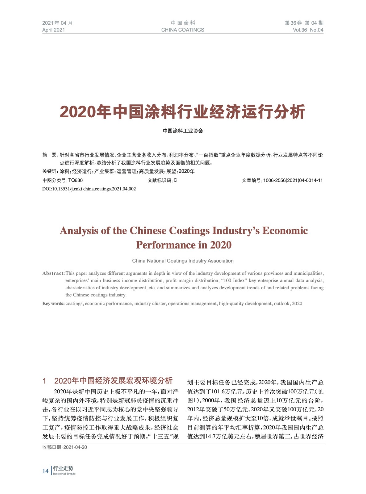 2020年中國涂料行業(yè)經(jīng)濟(jì)運(yùn)行分析