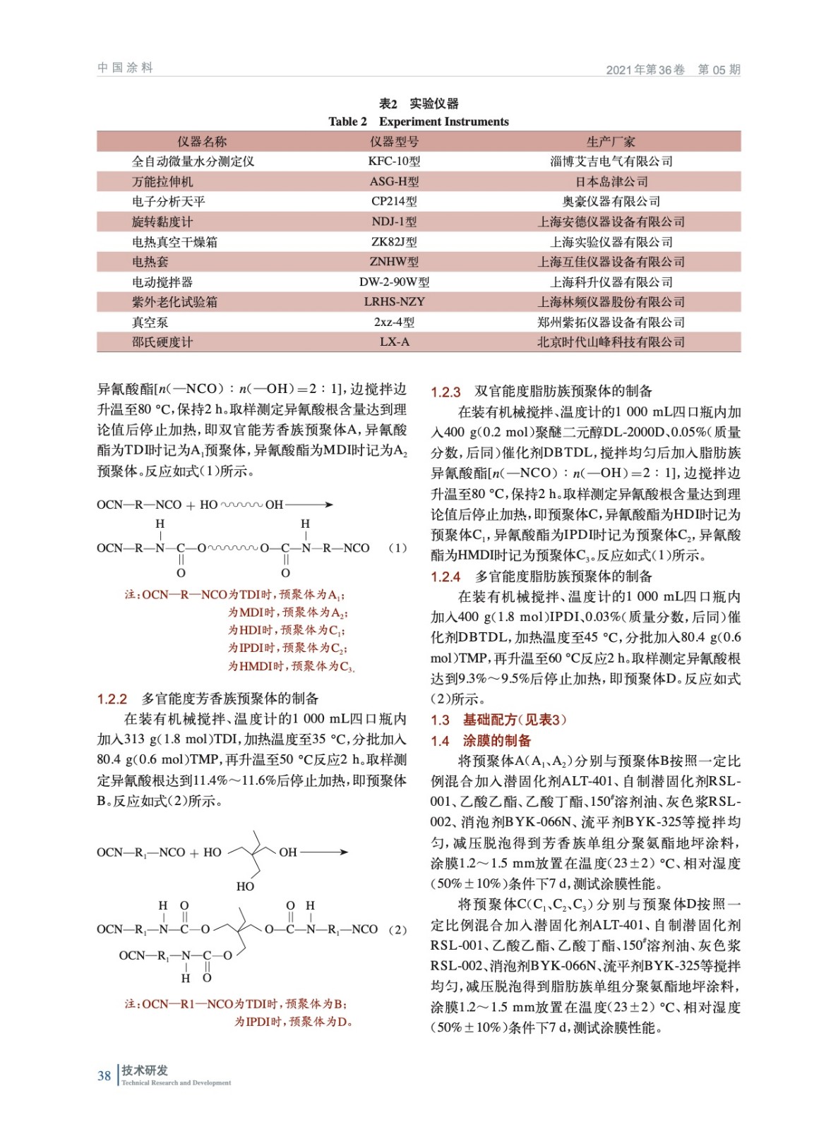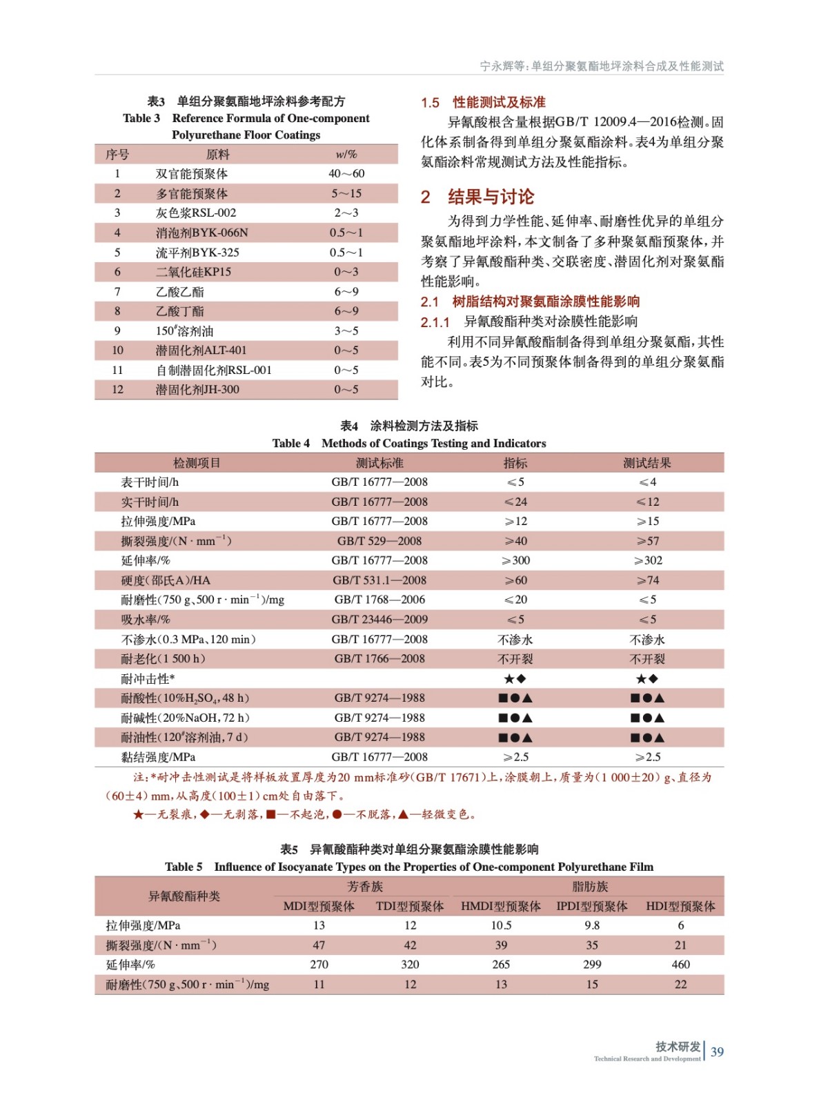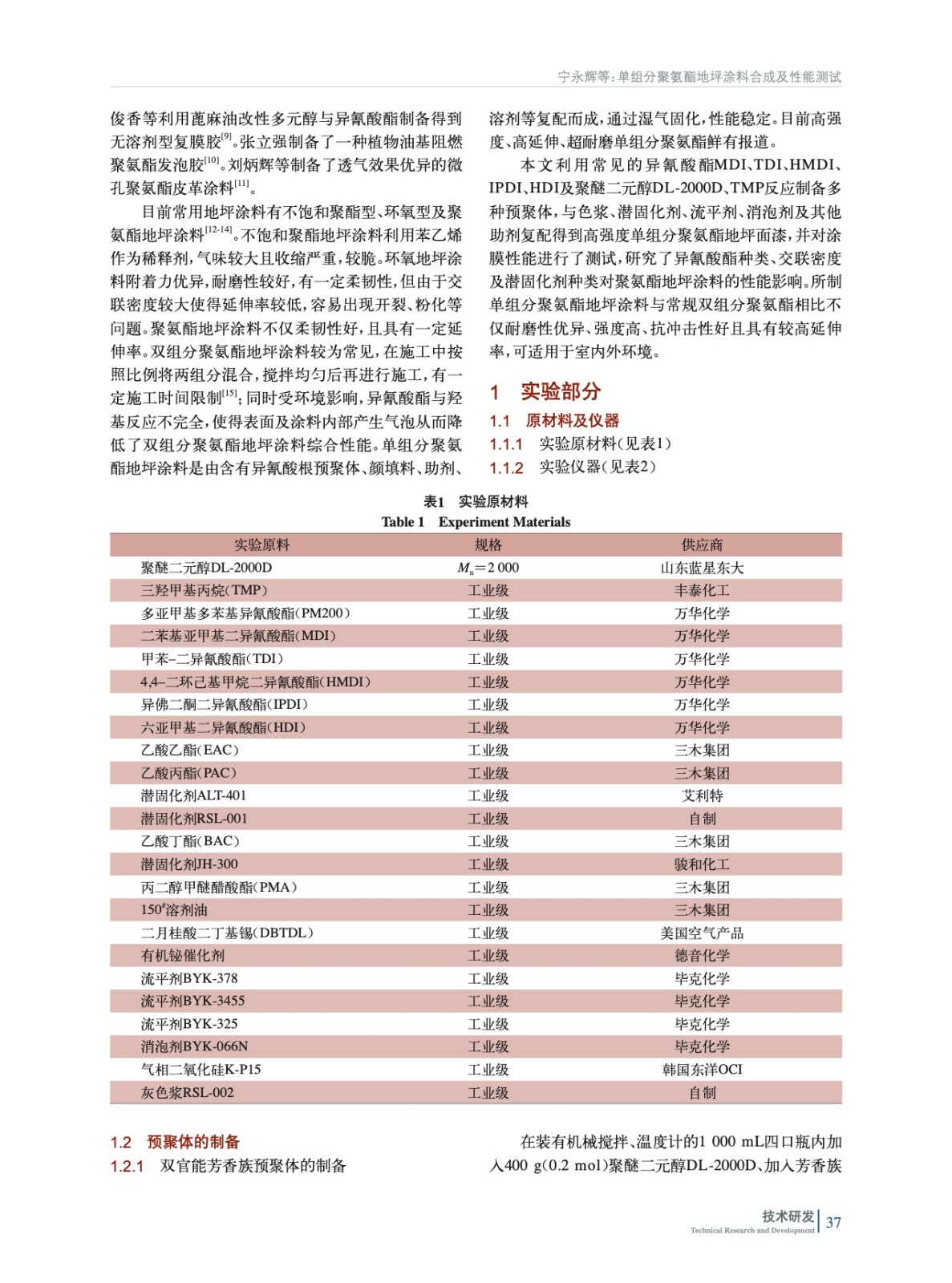 單組分聚氨酯地坪涂料合成及性能測試