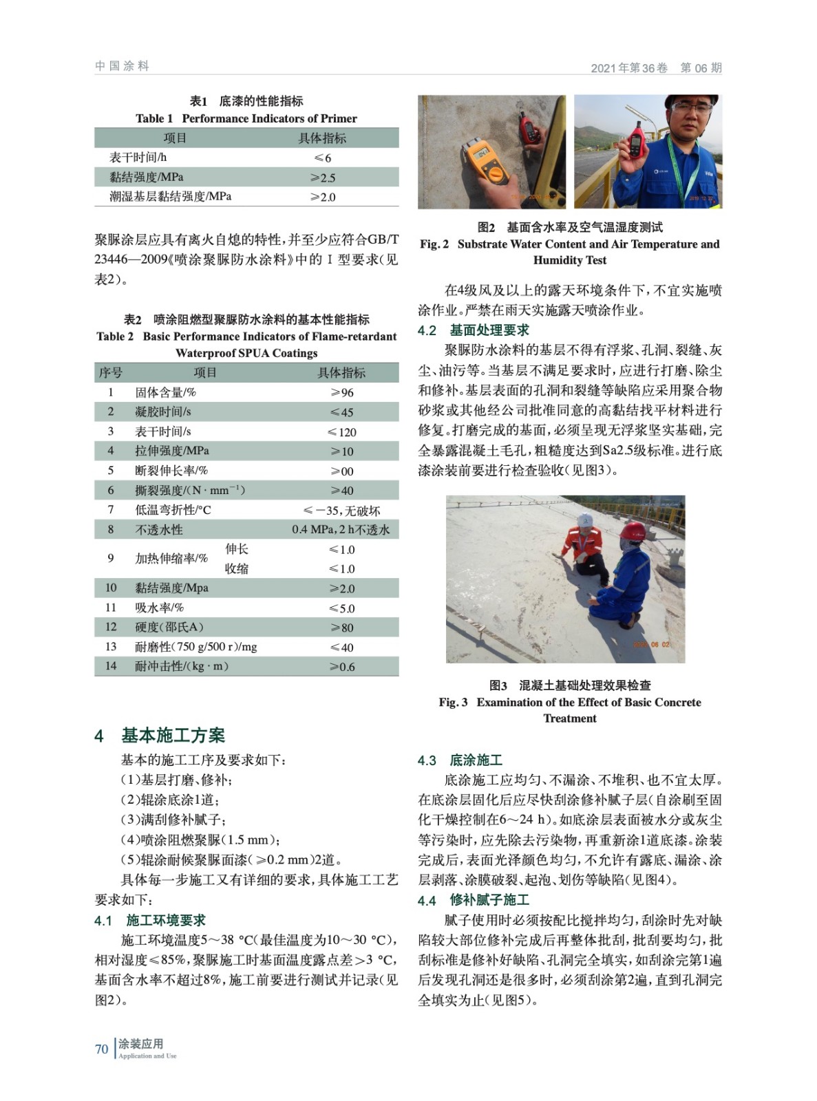 介紹了液化天然氣儲罐外罐的防護基本要求、材料選型原則,以及該防護工程概況、施工重點與難點、施工方案等。重點介紹了噴涂阻燃型防水防腐聚脲在該工程中的應用情況,包括聚脲施工環境要求及實際環境狀況、施工工序、涂層質量要求及驗收標準等。