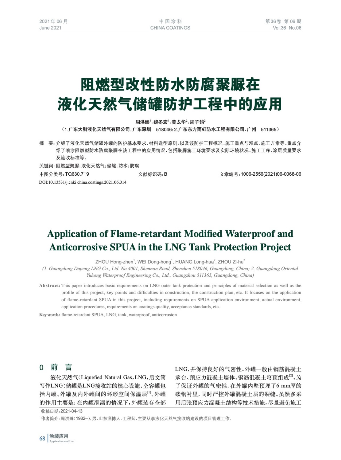 阻燃型改性防水防腐聚脲在液化天然氣儲罐防護工程中的應用