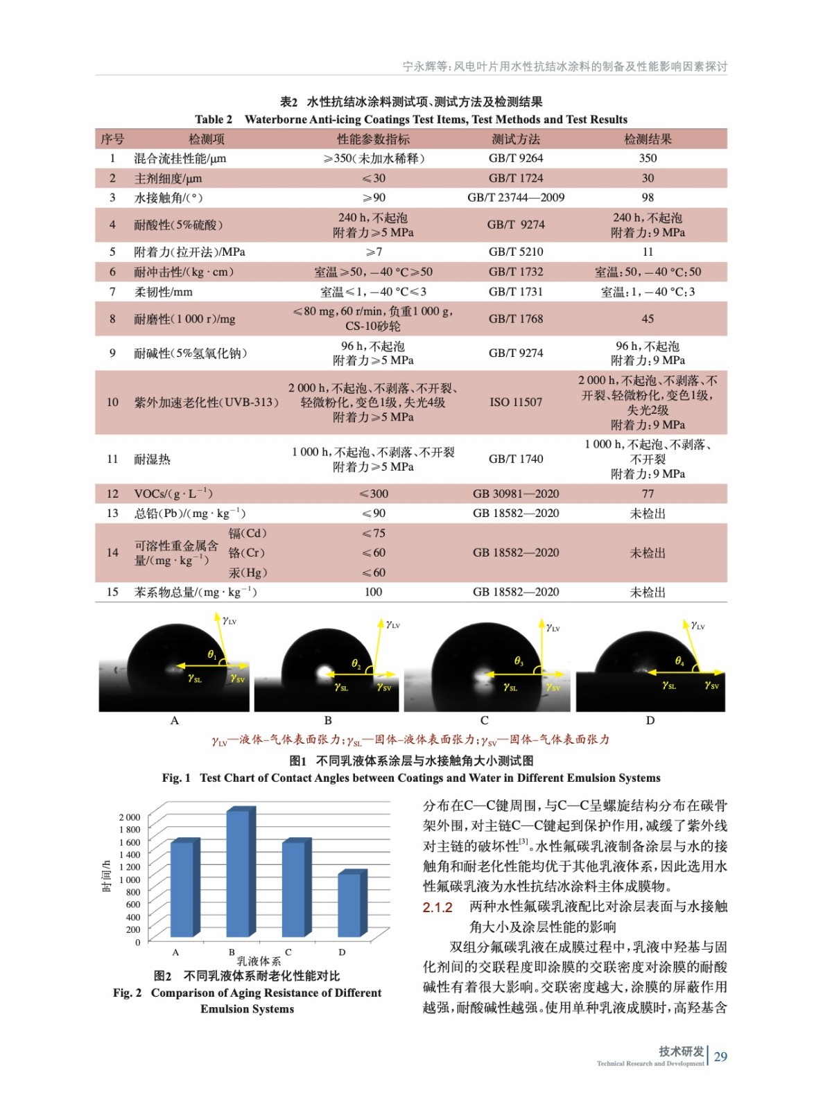 風(fēng)電葉片用水性抗結(jié)冰涂料的制備及性能影響因素探討