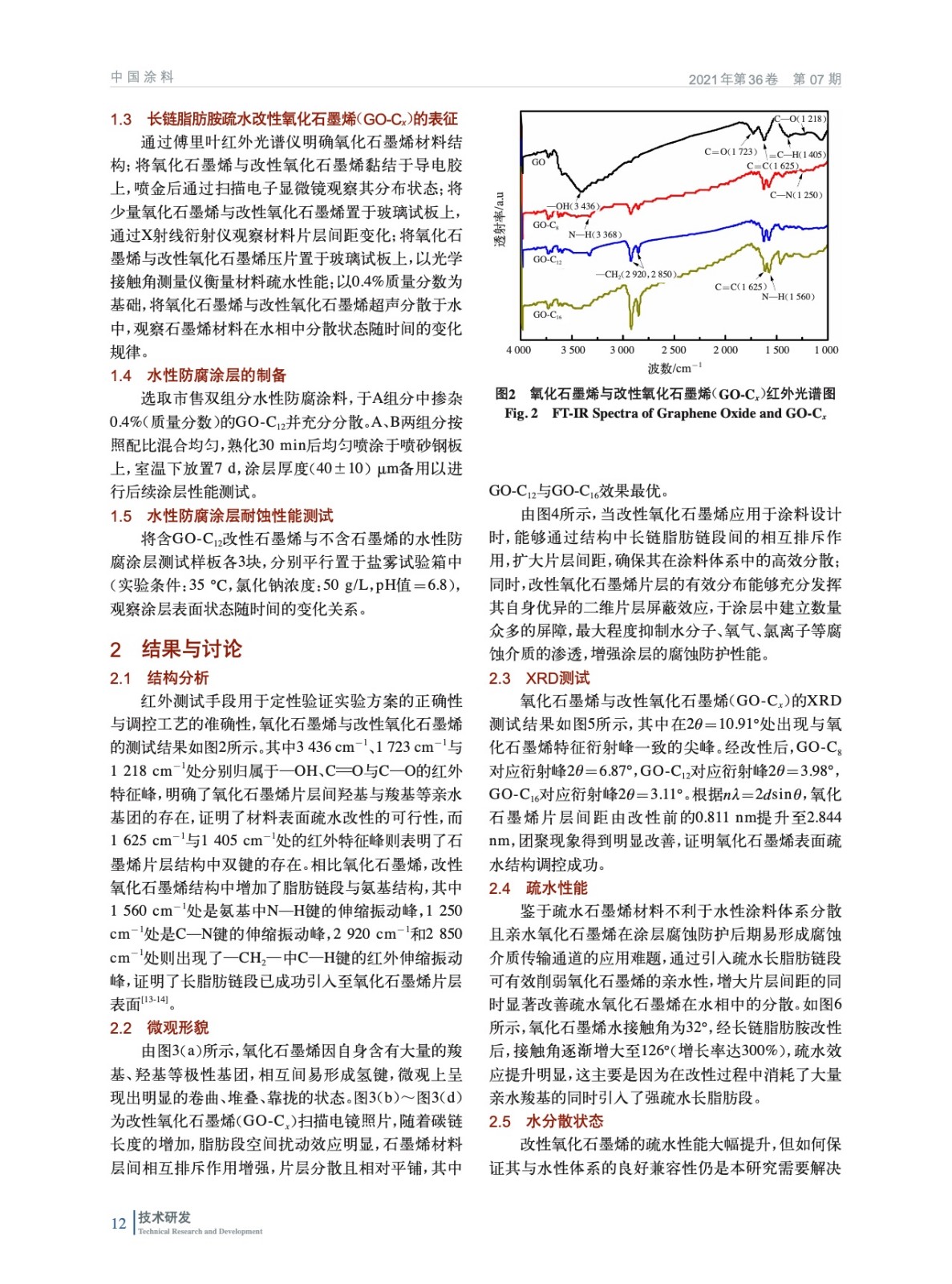氧化石墨烯材料疏水結構調控及其在水性防腐涂層中的應用研究
