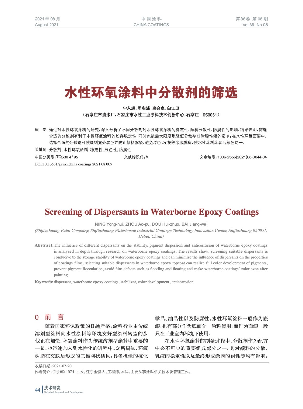 本文系作者@寧永輝,周奧浦,竇會卓,白江衛(wèi) 授權(quán)中國涂料網(wǎng)發(fā)表,并經(jīng)中國涂料網(wǎng)編輯,未經(jīng)允許不得轉(zhuǎn)載,如需轉(zhuǎn)載請聯(lián)系chinacoatingnet@vip.163.com