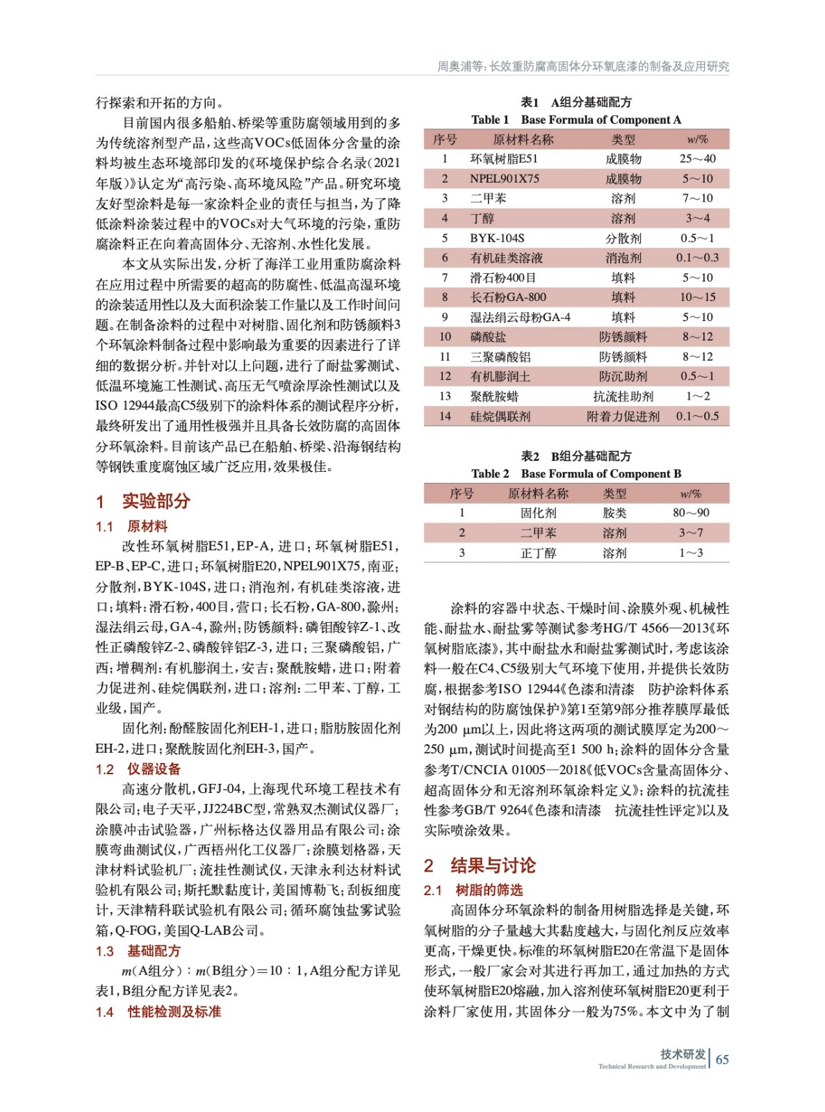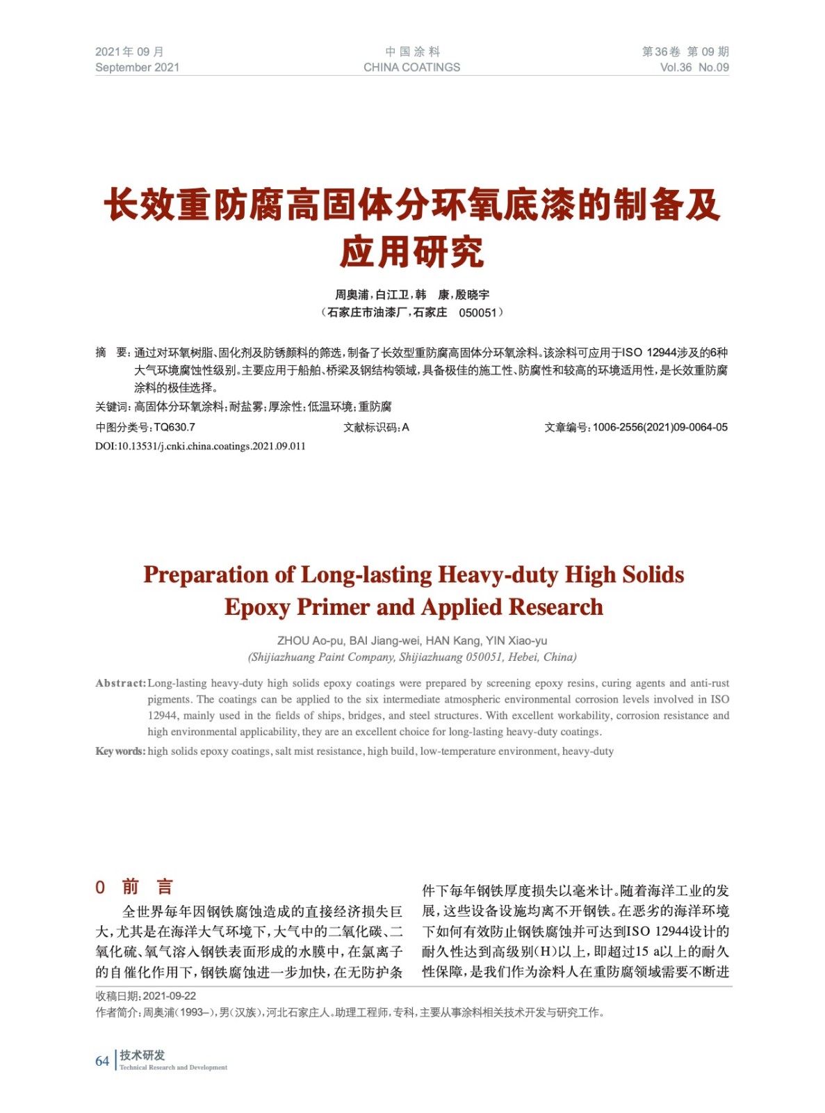 長(zhǎng)效重防腐高固體分環(huán)氧底漆的制備及應(yīng)用研究