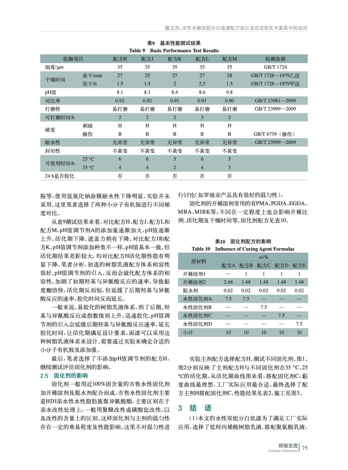 水性木器雙組分白底漆配方設計及在定制實木家具中的應用