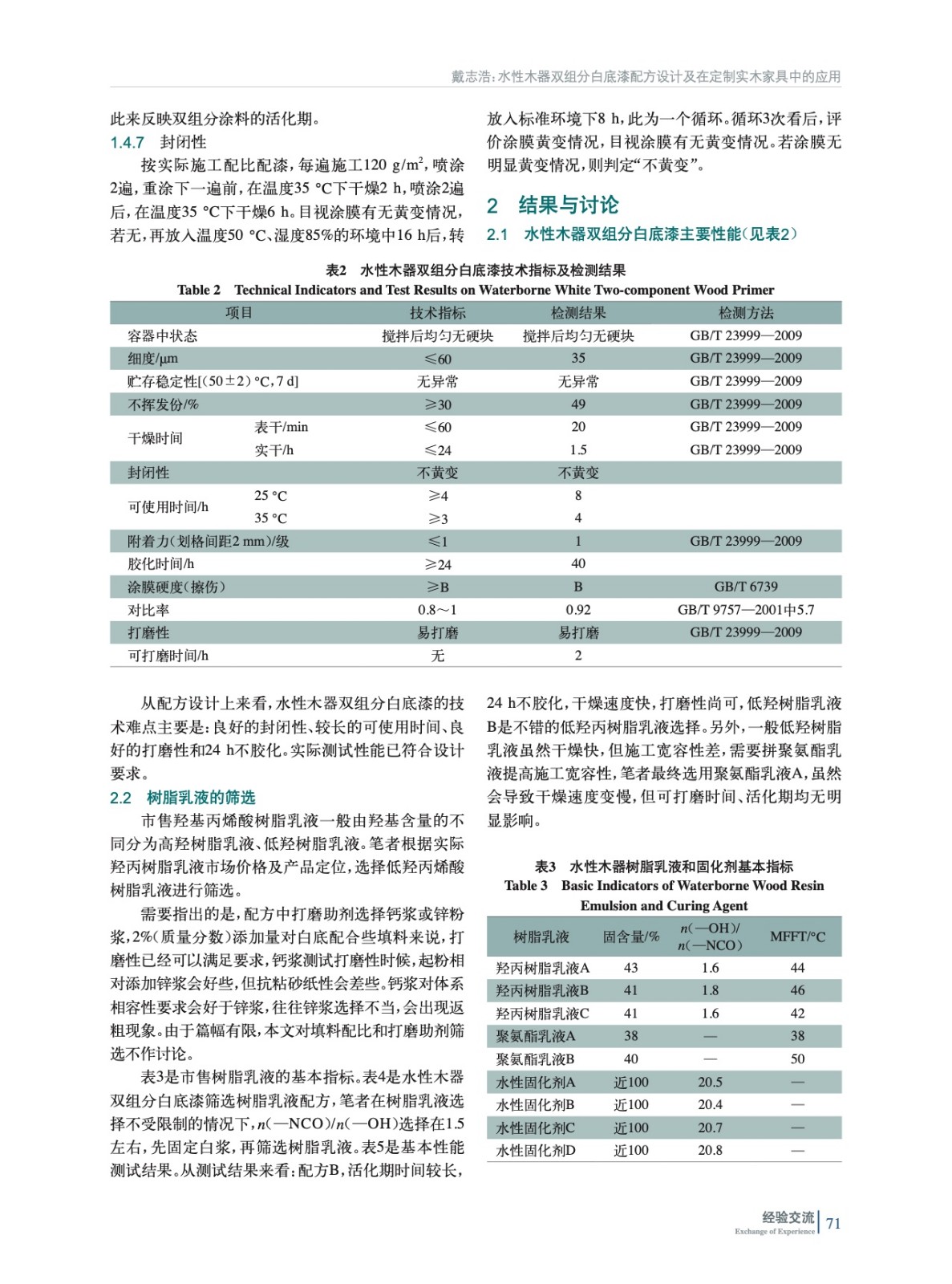 水性木器雙組分白底漆,廣泛應用于實木家具領域,具有良好的封閉性,為了滿足工廠生產需要,著重在樹脂乳液的篩選、分散劑的篩選、pH值調節劑的篩選及固化劑的影響幾個方面,進行了分析和討論。