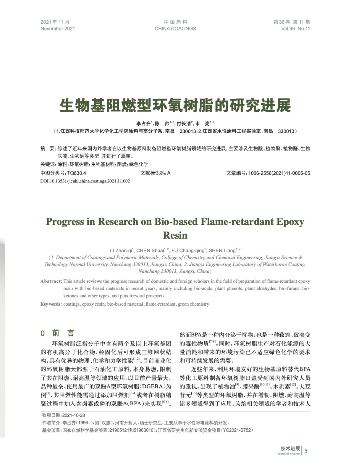 生物基阻燃型環(huán)氧樹脂的研究進(jìn)展