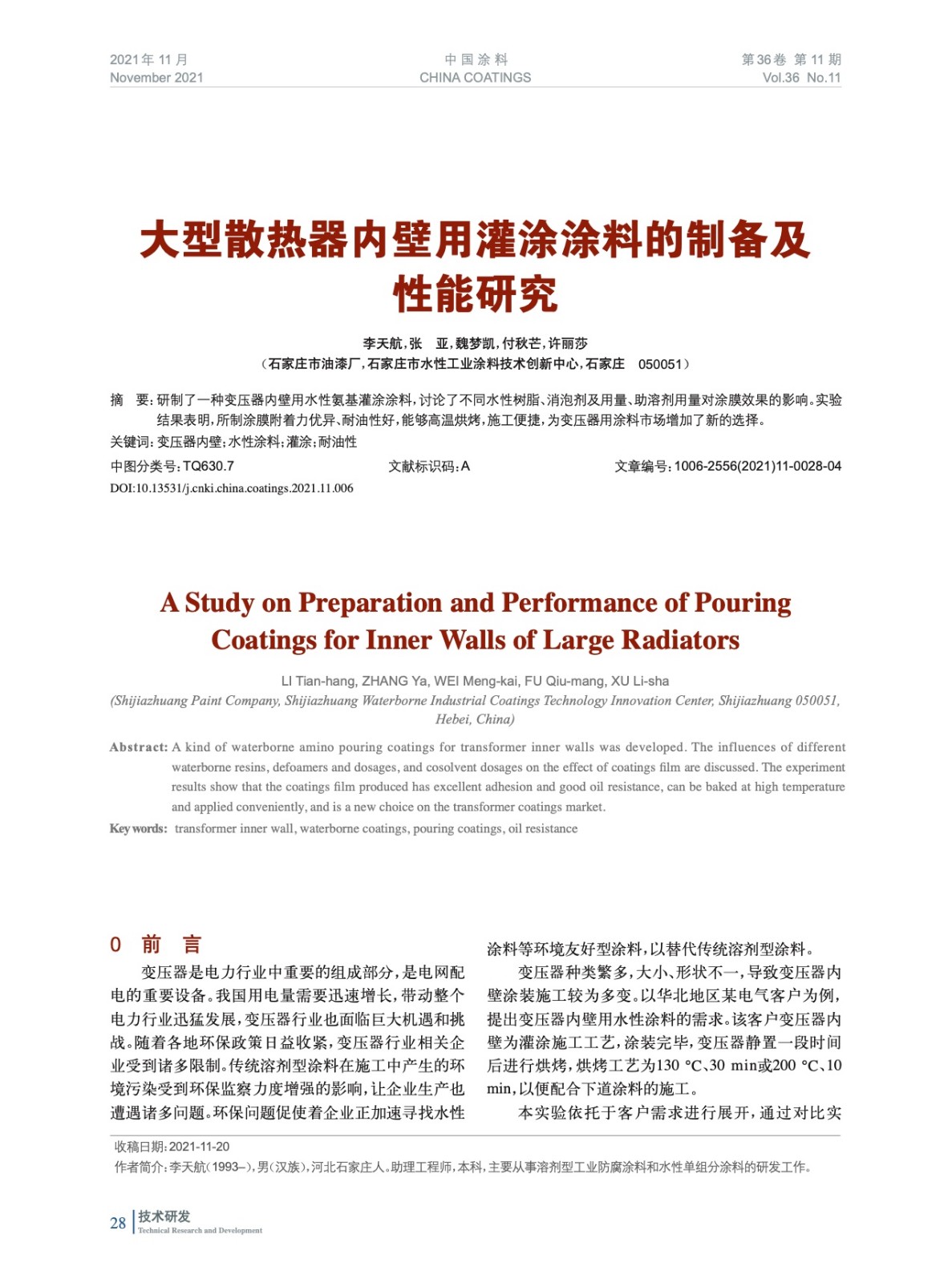 本文系作者@李天航,張 亞,魏夢凱,付秋芒,許麗莎 授權中國涂料網發表,并經中國涂料網編輯,未經允許不得轉載,如需轉載請聯系chinacoatingnet@vip.163.com
