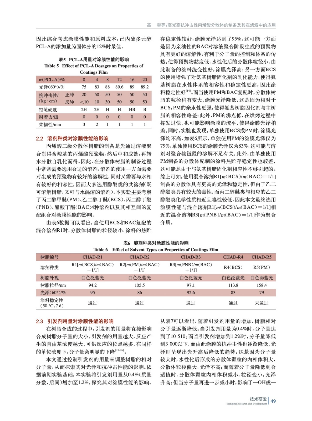 高光高抗沖擊性丙烯酸分散體的制備及其在烤漆中的應用