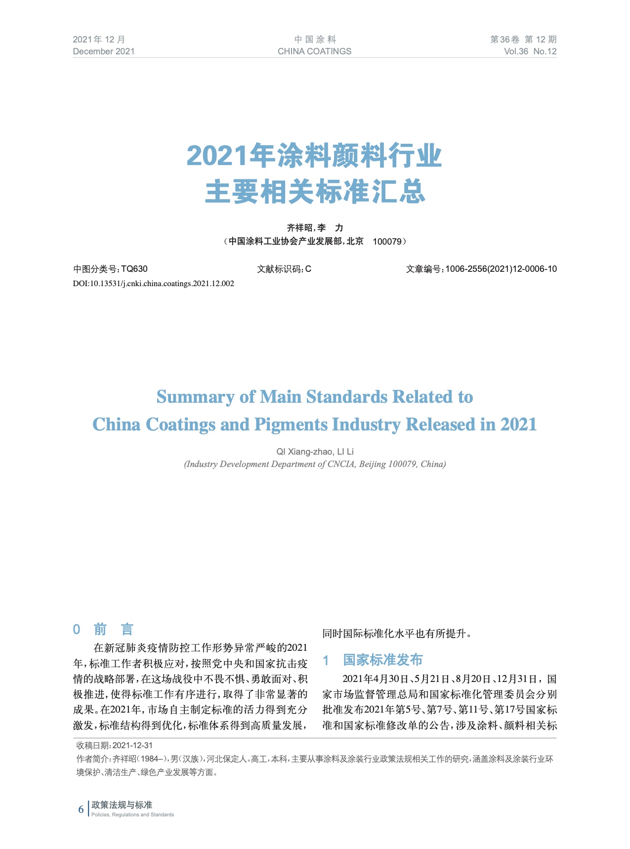 本文系作者@齊祥昭,李 力 授權中國涂料網發表,并經中國涂料網編輯,未經允許不得轉載,如需轉載請聯系chinacoatingnet@vip.163.com