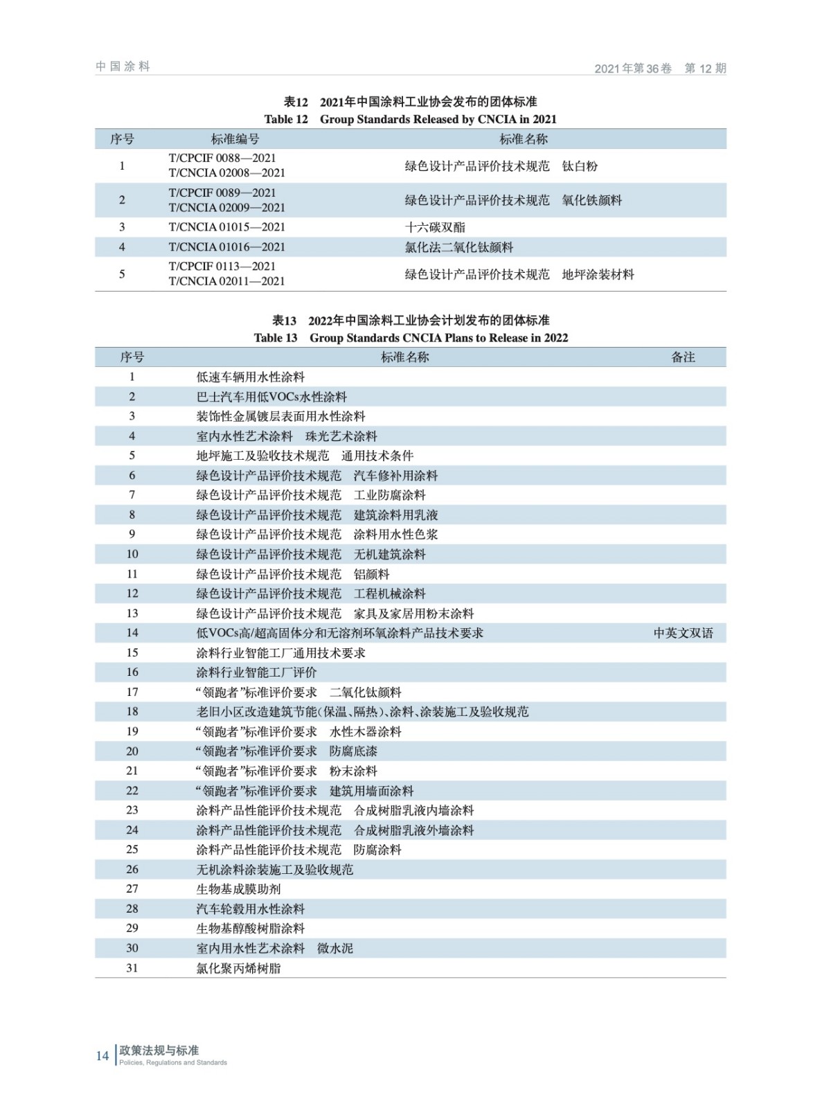 梳理匯總了2021年度中國涂料顏料行業出臺的相關國家、行業及團體標準。