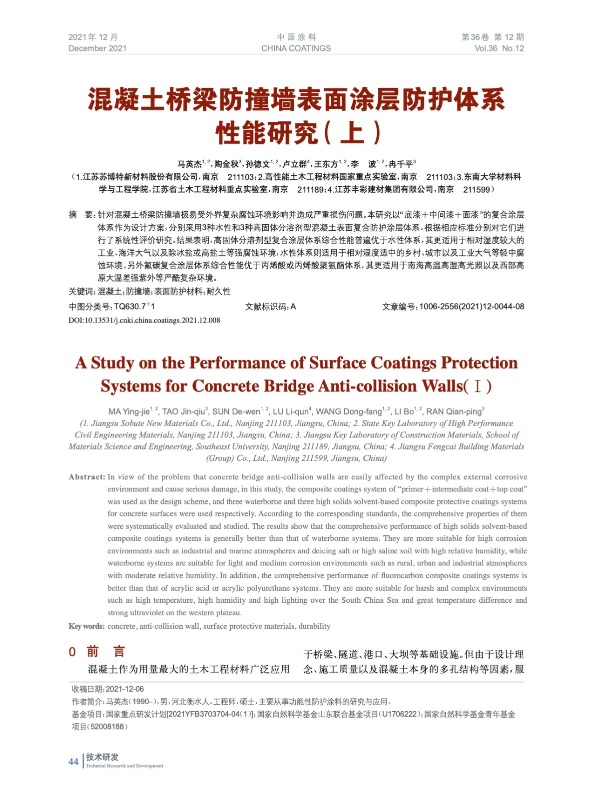 本文系作者@馬英杰,陶金秋,孫德文,盧立群,王東方,李 波,冉千平 授權中國涂料網發表,并經中國涂料網編輯,未經允許不得轉載,如需轉載請聯系chinacoatingnet@vip.163.com