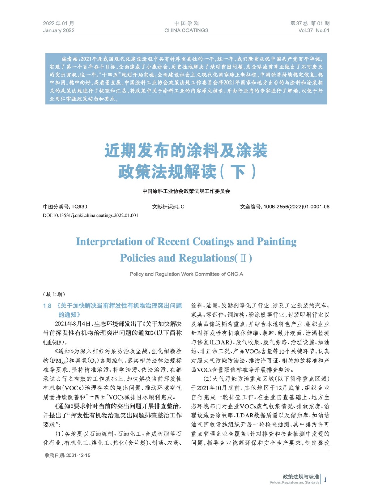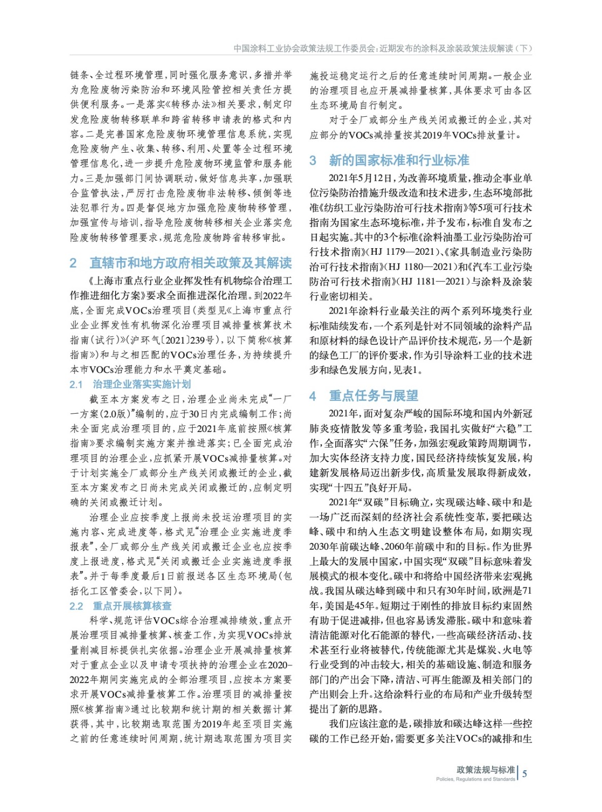編者按:中國涂料工業協會政策法規工作委員會將2021年國家和地方出臺的與涂料和涂裝相關的政策法規進行了梳理和匯總,將政策中關于涂料工業的內容原文摘錄,并由行業內的專家進行了解讀,以便于行業同仁掌握政策動態和要點。