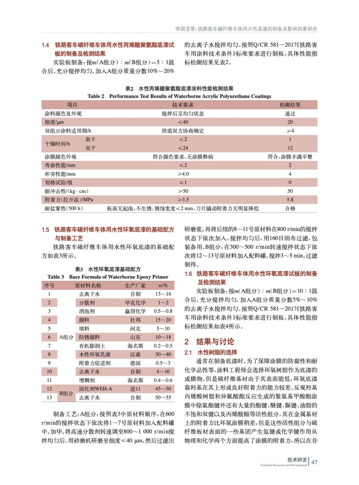 鐵路客車碳纖維車體用水性底漆的制備及影響因素研究