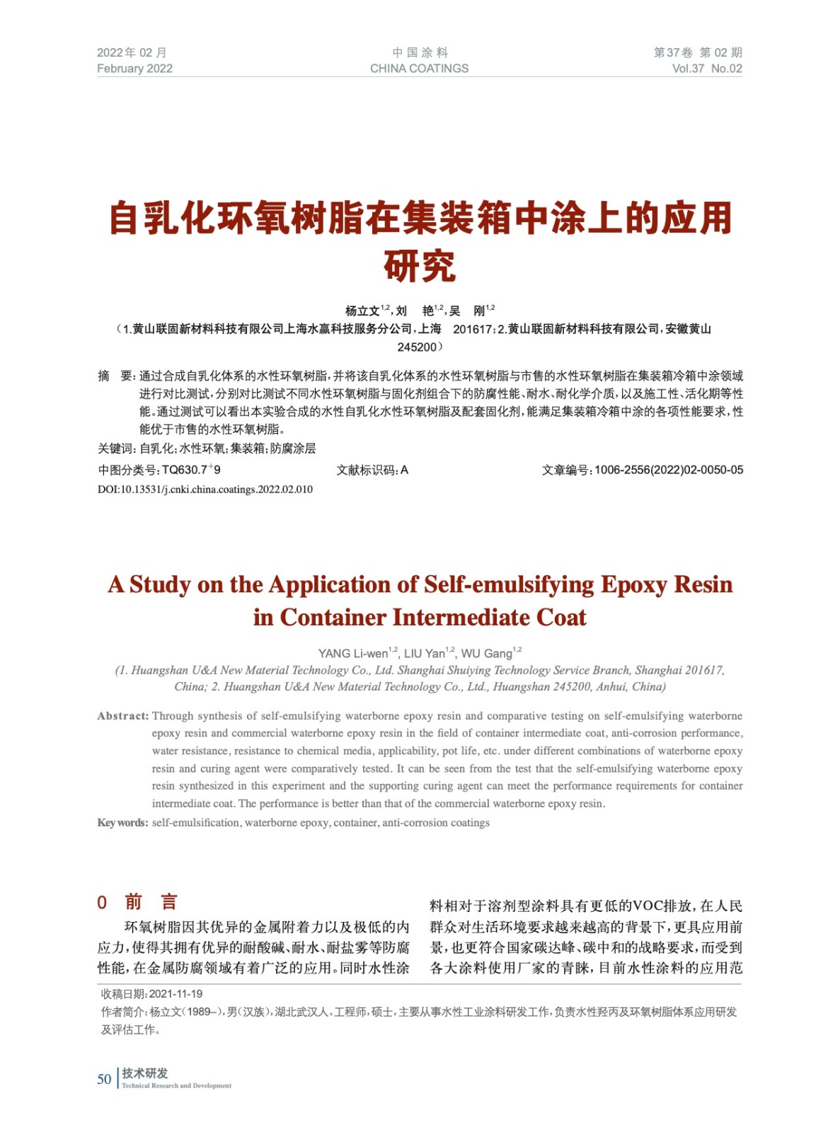自乳化環(huán)氧樹脂在集裝箱中涂上的應(yīng)用研究