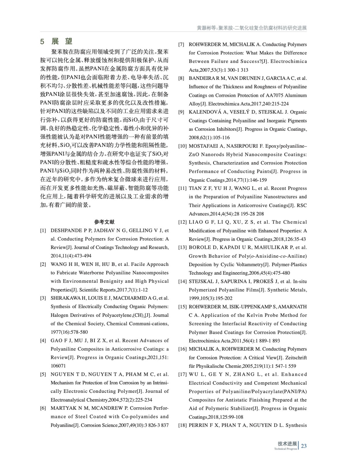 聚苯胺-二氧化硅復(fù)合防腐材料的研究進(jìn)展