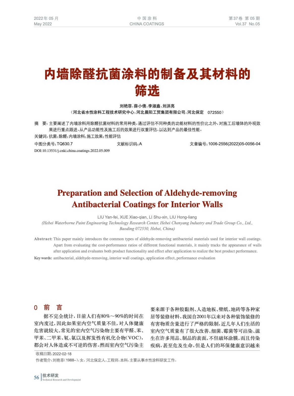 本文系作者@劉艷菲,薛小倩,李淑鑫,劉洪亮 授權中國涂料網發表,并經中國涂料網編輯,未經允許不得轉載,如需轉載請聯系chinacoatingnet@vip.163.com