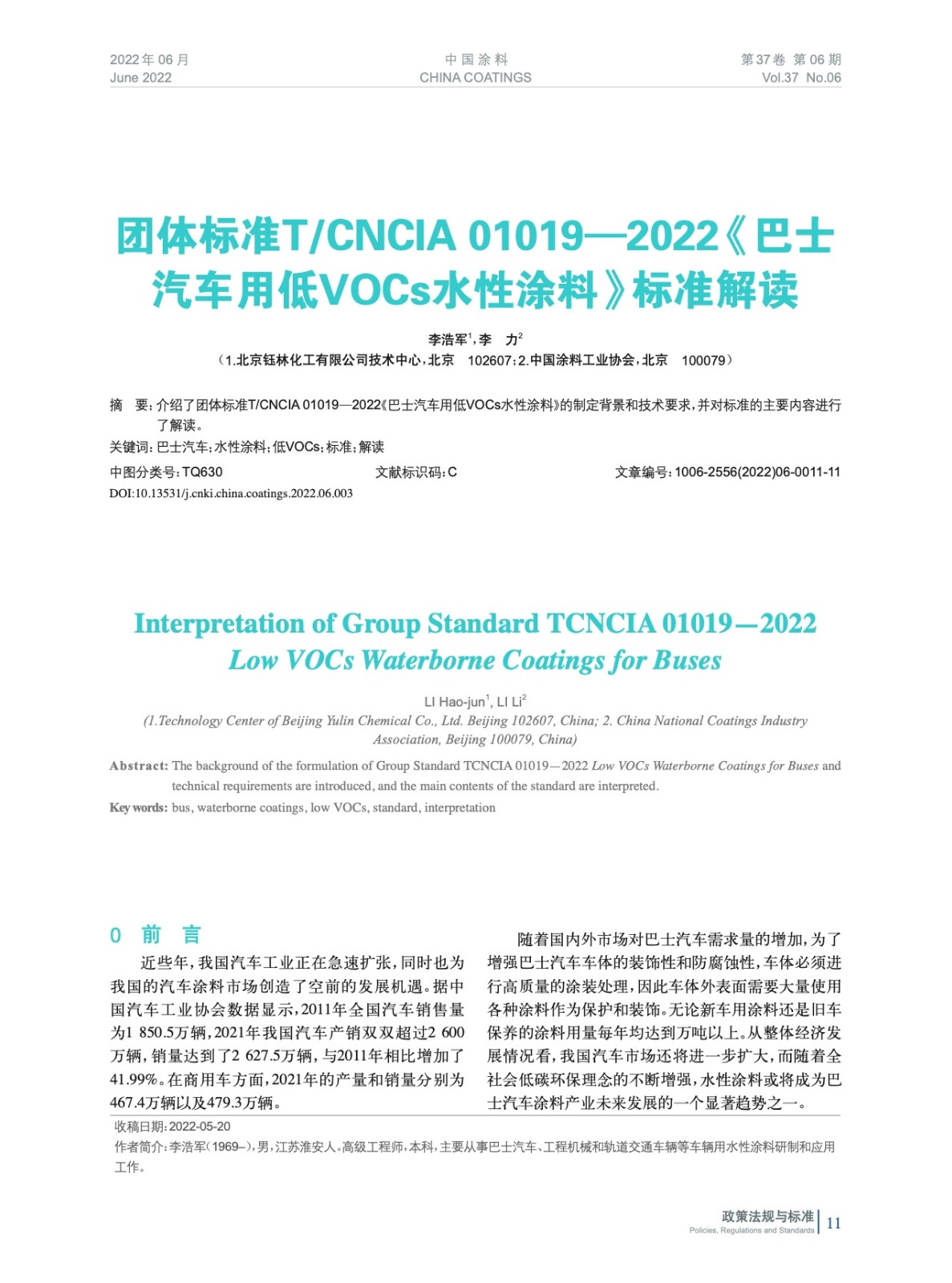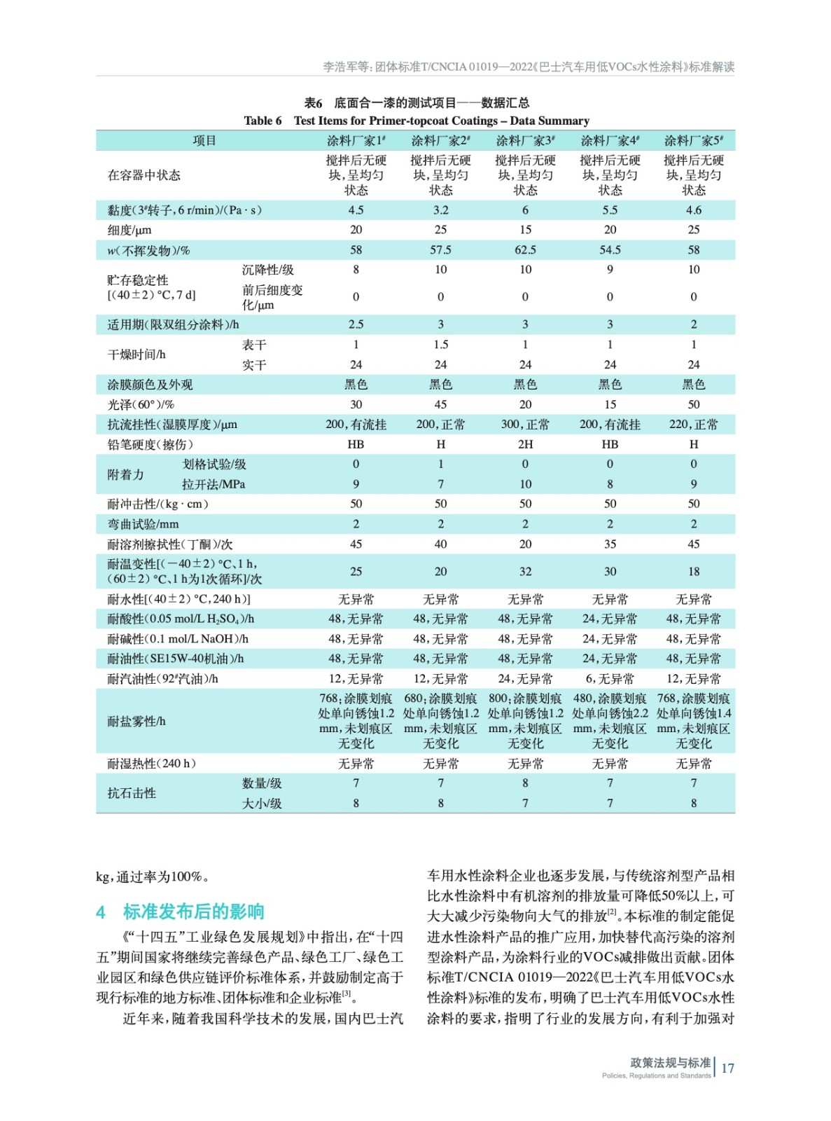 介紹了團體標準T/CNCIA 01019—2022《巴士汽車用低VOCs水性涂料》的制定背景和技術要求,并對標準的主要內容進行了解讀。