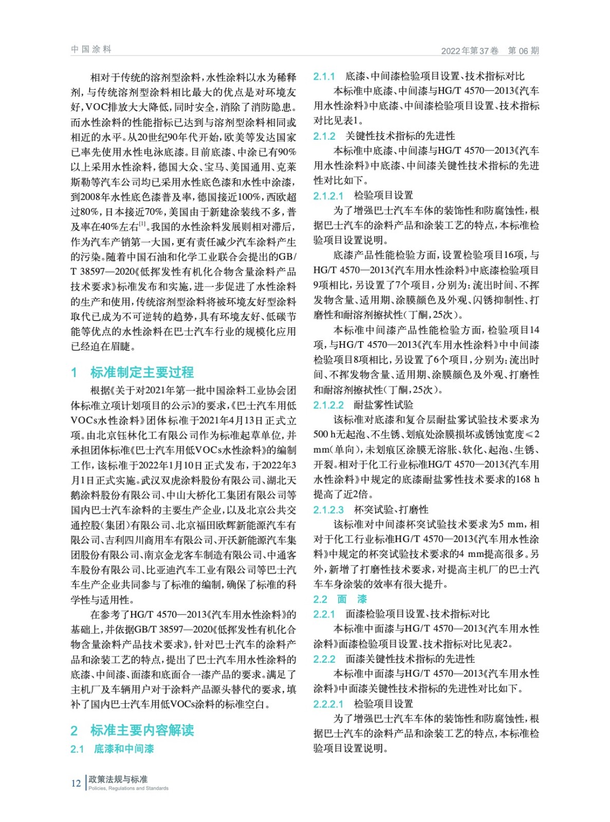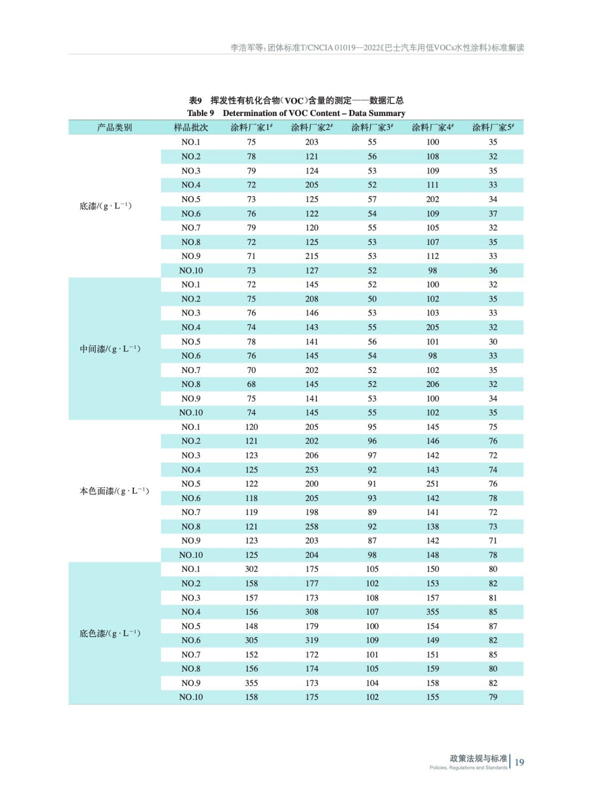 團體標準T/CNCIA 01019—2022《巴士汽車用低VOCs水性涂料》 標準解讀