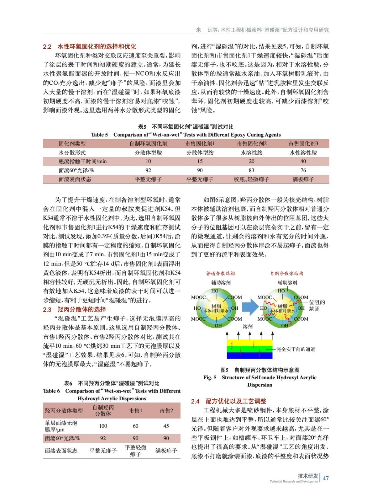 水性工程機械涂料“濕碰濕”配方設計和應用研究