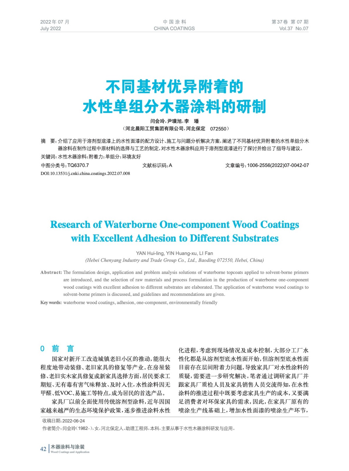 介紹了應用于溶劑型底漆上的水性面漆的配方設計、施工與問題分析解決方案,闡述了不同基材優異附著的水性單組分木器涂料在制作過程中原材料的選擇與工藝的制定,對水性木器涂料應用于溶劑型底漆進行了探討并給出了指導與建議。