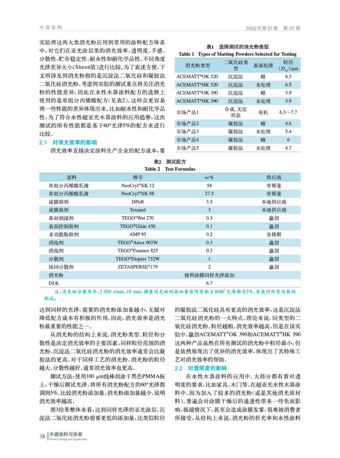 水性木器涂料中不同類型消光粉的研究