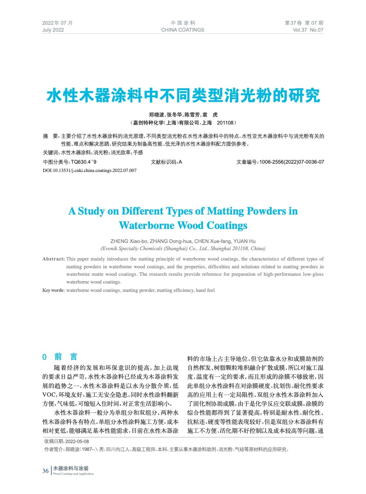 本文系作者@鄭曉波,張冬華,陳雪芳,袁 虎 授權中國涂料網發表,并經中國涂料網編輯,未經允許不得轉載,如需轉載請聯系chinacoatingnet@vip.163.com