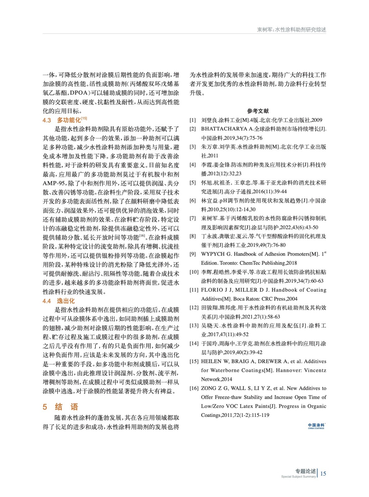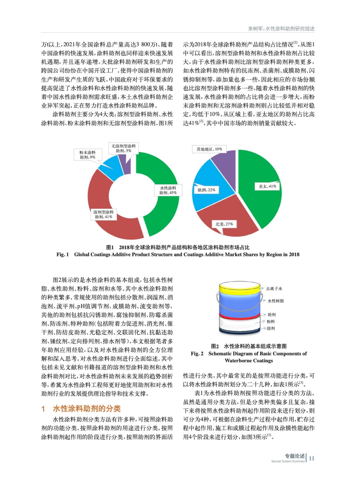 對水性涂料用助劑進行了概括整理和歸類,并在對溶劑型涂料助劑和水性涂料助劑進行比較的基礎上,總結得出助劑使用原則和方法,同時對水性涂料助劑的未來發展方向及存在的挑戰進行展望。