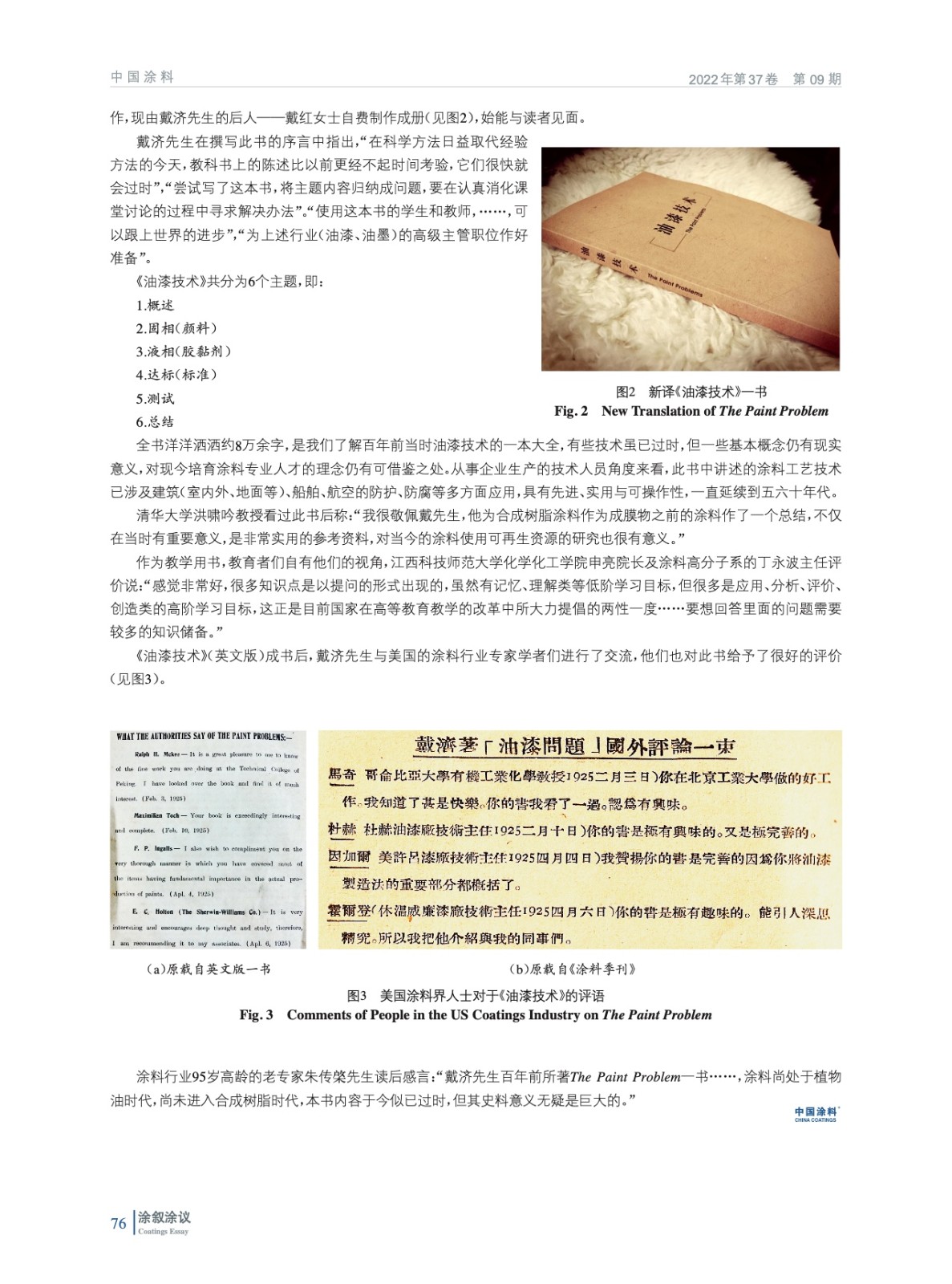 摘要:前幾期已刊登的幾篇撰文,使大家進(jìn)一步了解到20世紀(jì)初,中國近代涂料工業(yè)開始萌芽,恰逢庚子賠款第一批留美學(xué)生學(xué)成歸來,遇上報(bào)效祖國的大好良機(jī)。其中一位學(xué)子——戴濟(jì)選擇了教書育人的道路,來到北平(現(xiàn)北京)踏入北京工業(yè)大學(xué),破天荒地開設(shè)了“油漆化學(xué)”課,開啟了將中國傳統(tǒng)的技藝——“油漆”,用化學(xué)的理論闡釋它的性能和特點(diǎn),賦予“油漆”是一種特殊、不可或缺的保護(hù)材料的新概念。
