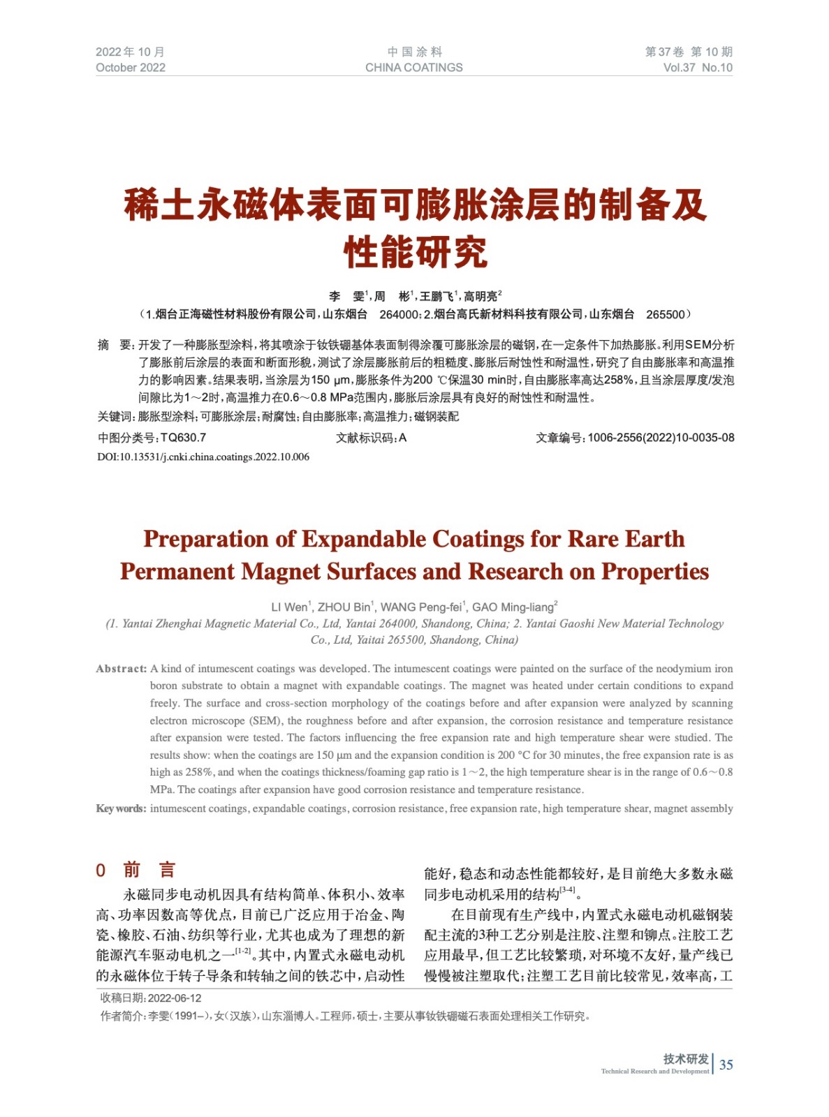 稀土永磁體表面可膨脹涂層的制備及性能研究
